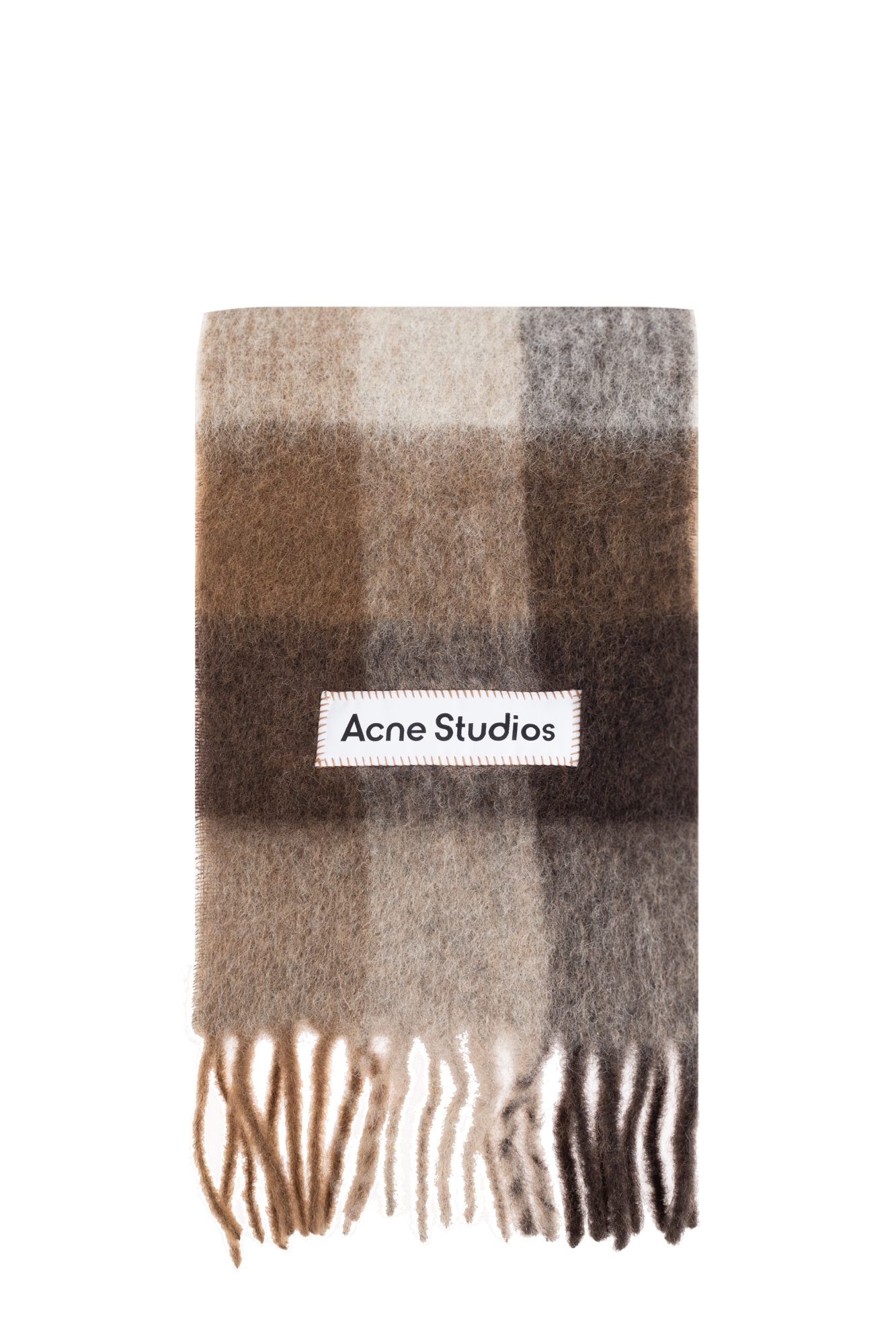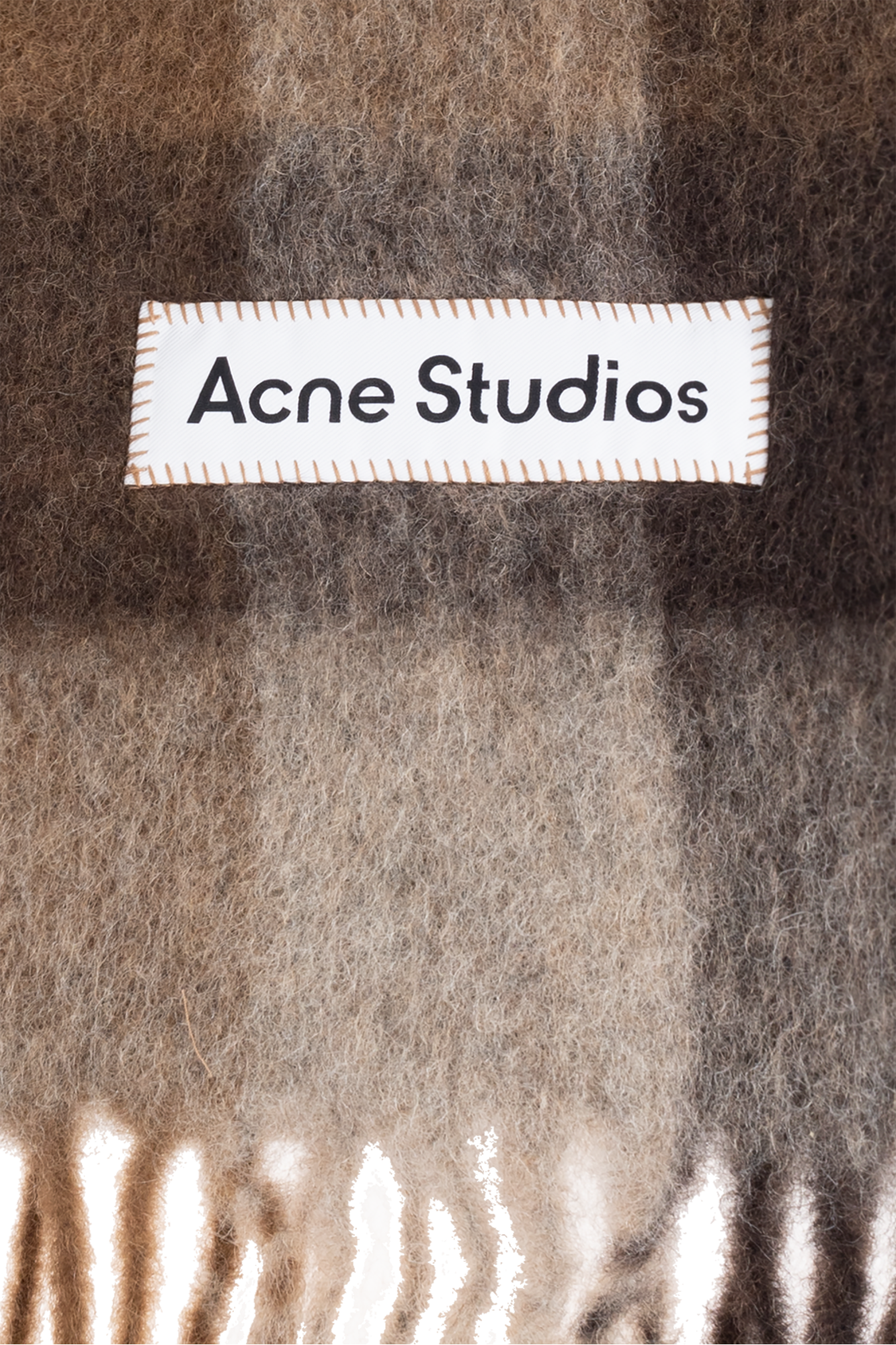 Шарф Acne Studios Checked Wool Fringe із бахромою в клітинку - це втілення стилю та якості. Виготовлений з м'якої суміші вовни та мохеру, цей шарф обіцяє комфорт та тепло. Він прикрашений нашивкою з логотипом Acne Studios, що додає йому оригінальності та вишуканості. Бахрома на кінцях шарфу створює елемент розкіші та жіночності. З таким шарфом ви будете виглядати стильно та відчувати себе затишно.