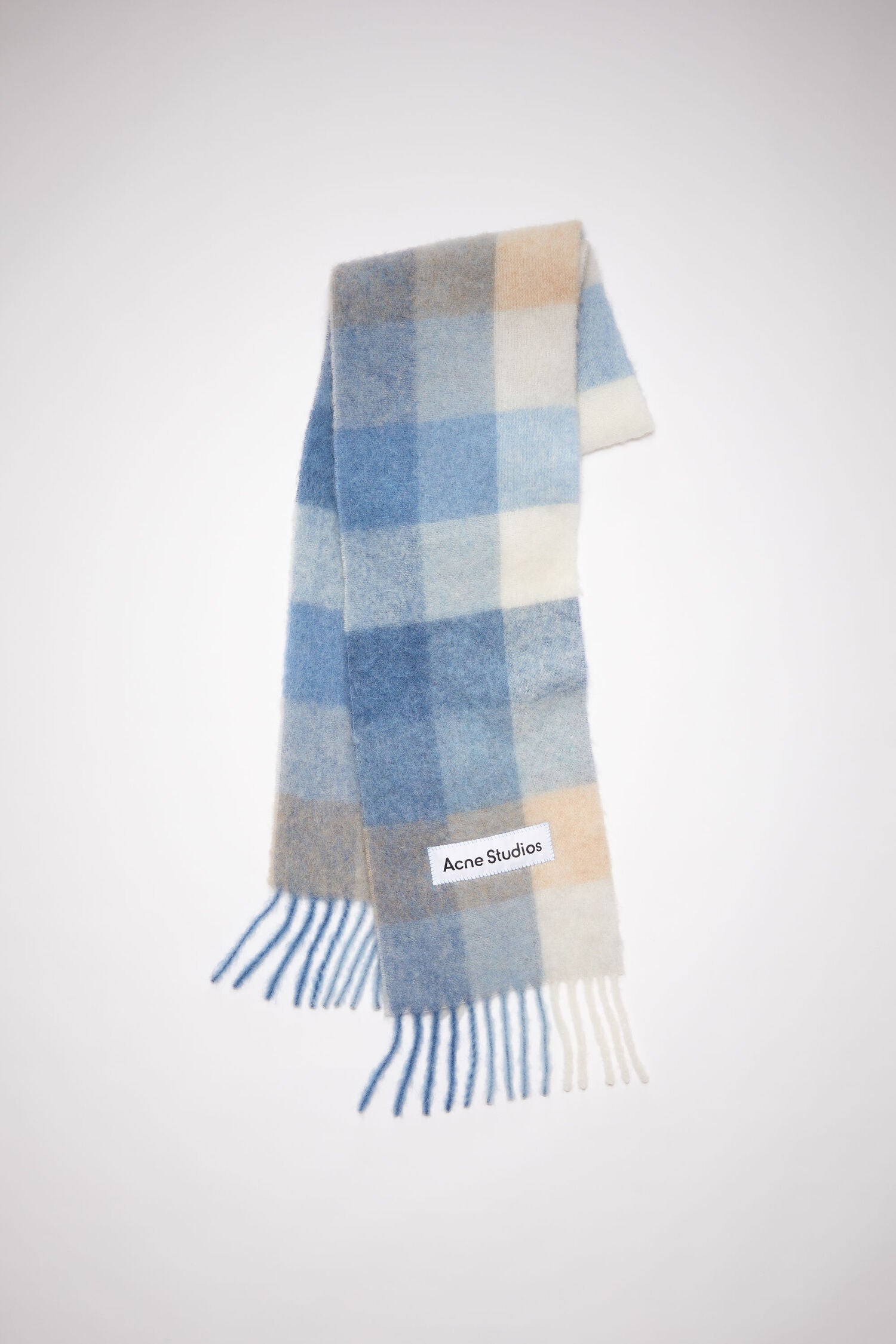 Acne Studios Checked Wool Fringe Scarf Pastel Blue/Beige