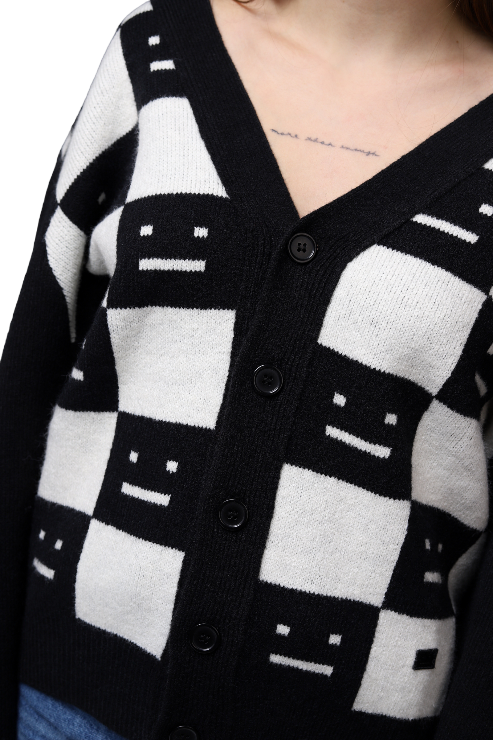 Цей монохромний кардиган від бренду Acne Studios виготовлений з м'якої вовни і стане ідеальним доповненням до вашого повсякденного гардеробу. Застібніть на ґудзики, або залиште розстібнутими - поверх улюбленої футболки чи сорочки, щоб створити лаконічний і водночас невимушений образ.