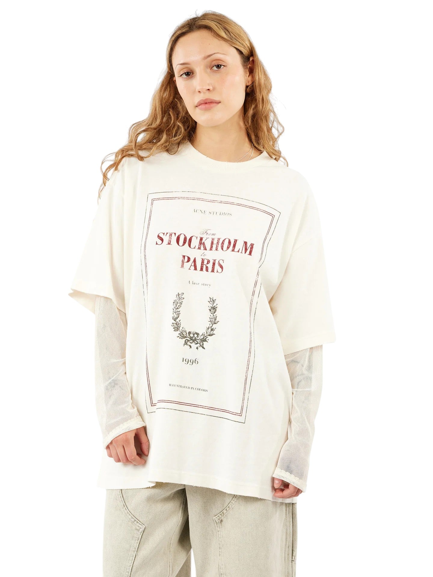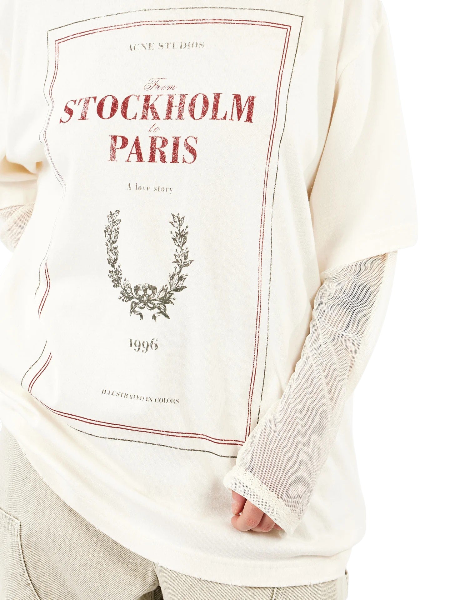Acne Studios Layered Stockholm Paris Print T-Shirt Off White