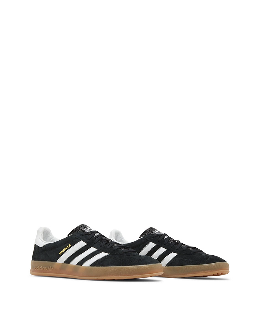 Adidas Gazelle Indoor 'Black White Gum' – це сучасна інтерпретація класичного стилю. Виготовлені з м'якої плюшевої замші, вони мають легкий стьобаний язичок для додаткового комфорту. Гнучка шкіряна підкладка та напівпрозора гумова підошва з рельєфними логотипами Adidas забезпечують зручність і стиль. Дизайн доповнюють фірмові три смужки та мерехтлива емблема "GAZELLE".