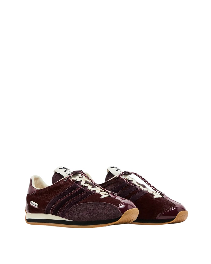 Adidas x Song For The Mute Country OG Maroon — це нове прочитання архівної класики через призму авангардної естетики бренду Song For The Mute. Унікальний силует з вінтажними нотками поєднує ностальгію з сучасним звучанням, створюючи ідеальний баланс між модою та функціональністю.