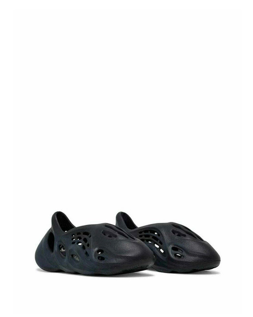 Тапочки-кросівки виконані з унікальної цільної піни, що складається з міксу EVA та водоростей. Ця пара буде пофарбована в темно-сірий колір із темно-синім принтом, футуристичною естетикою та овальними вирізами для комфорту та вентиляції.