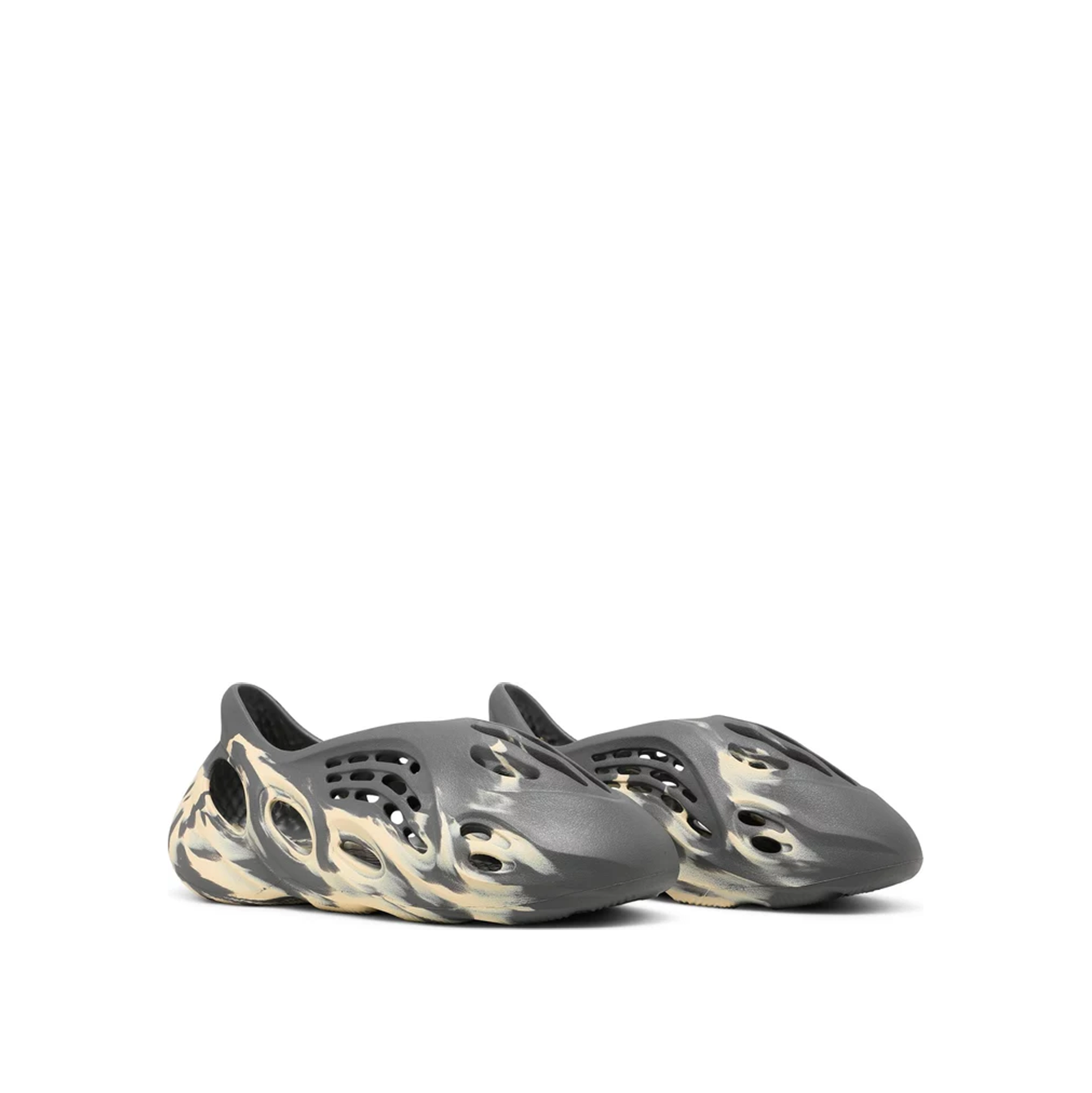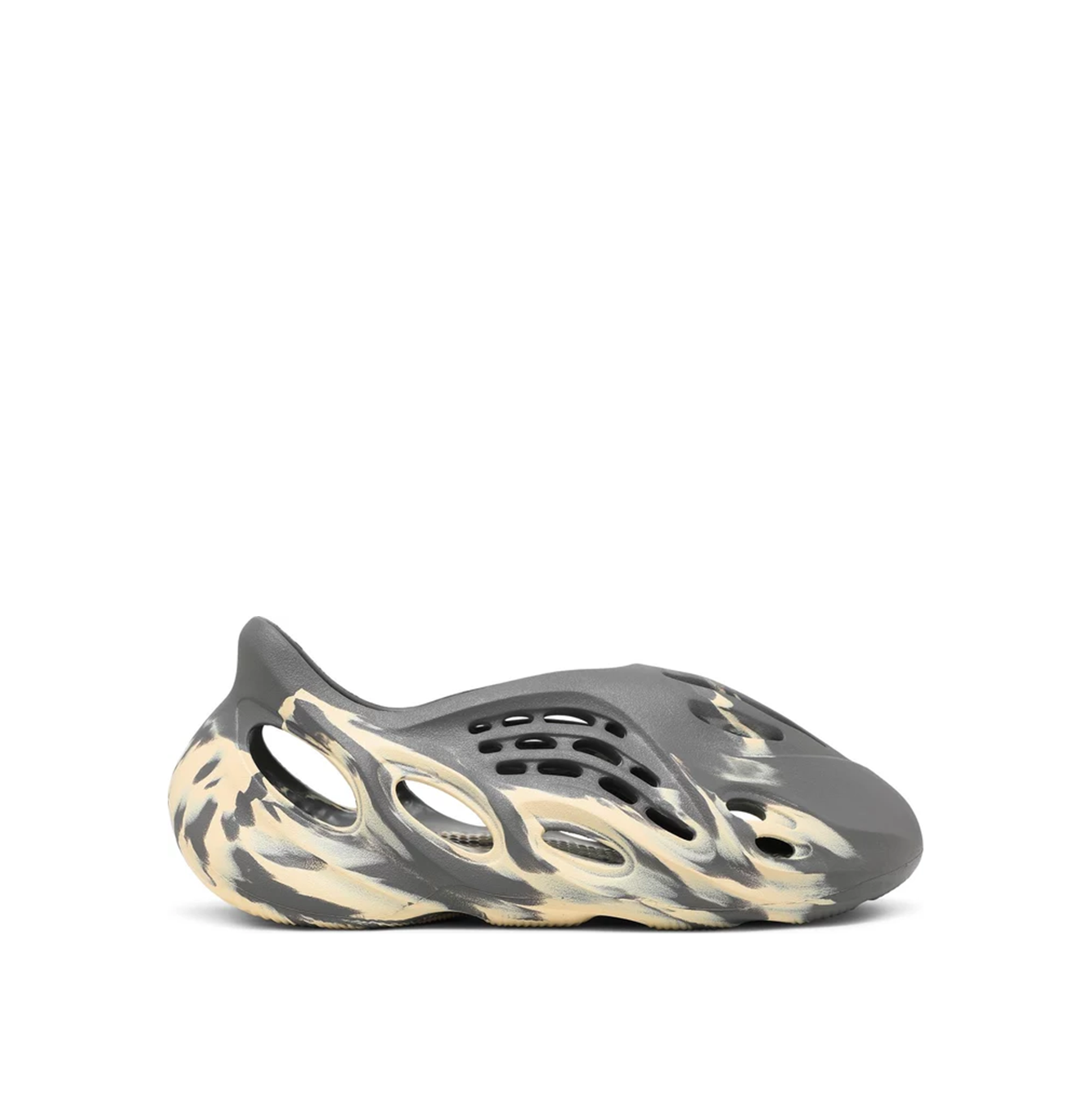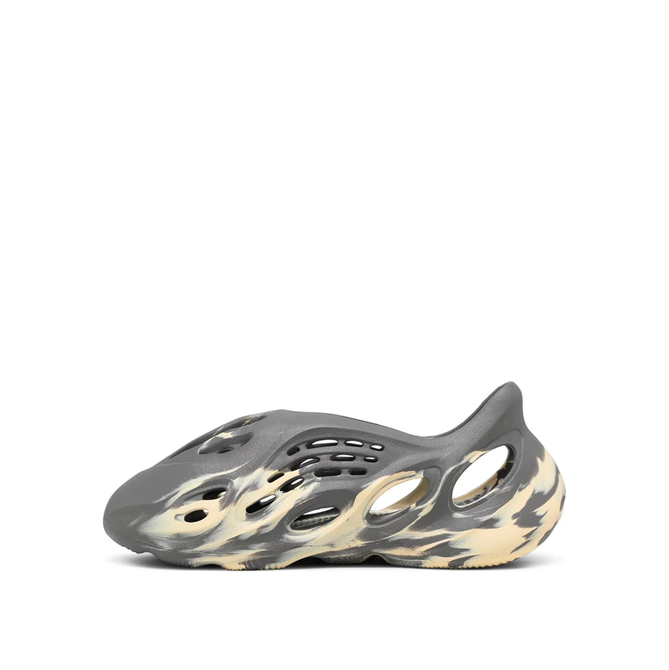 Кросівки adidas Yeezy Foam Runner 'MXT Moon Grey' демонструють нейтральну двоколірну гаму на скульптурному, футуристичному сліпоні. Гнучкий суцільнолитий корпус, виготовлений зі стійкої суміші EVA та піни на основі водоростей, пронизаний вентиляційними отворами. Текстурована внутрішня поверхня забезпечує нековзний комфорт, а підошва має ялинковий малюнок для надійного зчеплення з поверхнею. Зовнішнє брендування обмежується стриманим словом adidas під п'ятою.