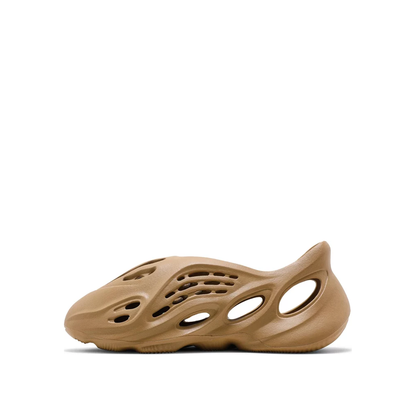 Кросівки adidas Yeezy Foam Runner 'Ochre' доповнюють свою футуристичну естетику приглушеним, монохромним оздобленням. Темно-бежевий відтінок пронизує суцільнолитий пінопластовий корпус з вентиляційними отворами різної форми та розміру, які покращують повітропроникність, додаючи глибини плавним лініям кросівок. На внутрішньому комірі вибито напис "FOAM RNNR", поряд з розміром взуття та брендуванням "Made in USA". Підошва має хвилястий малюнок для надійного зчеплення з поверхнею.