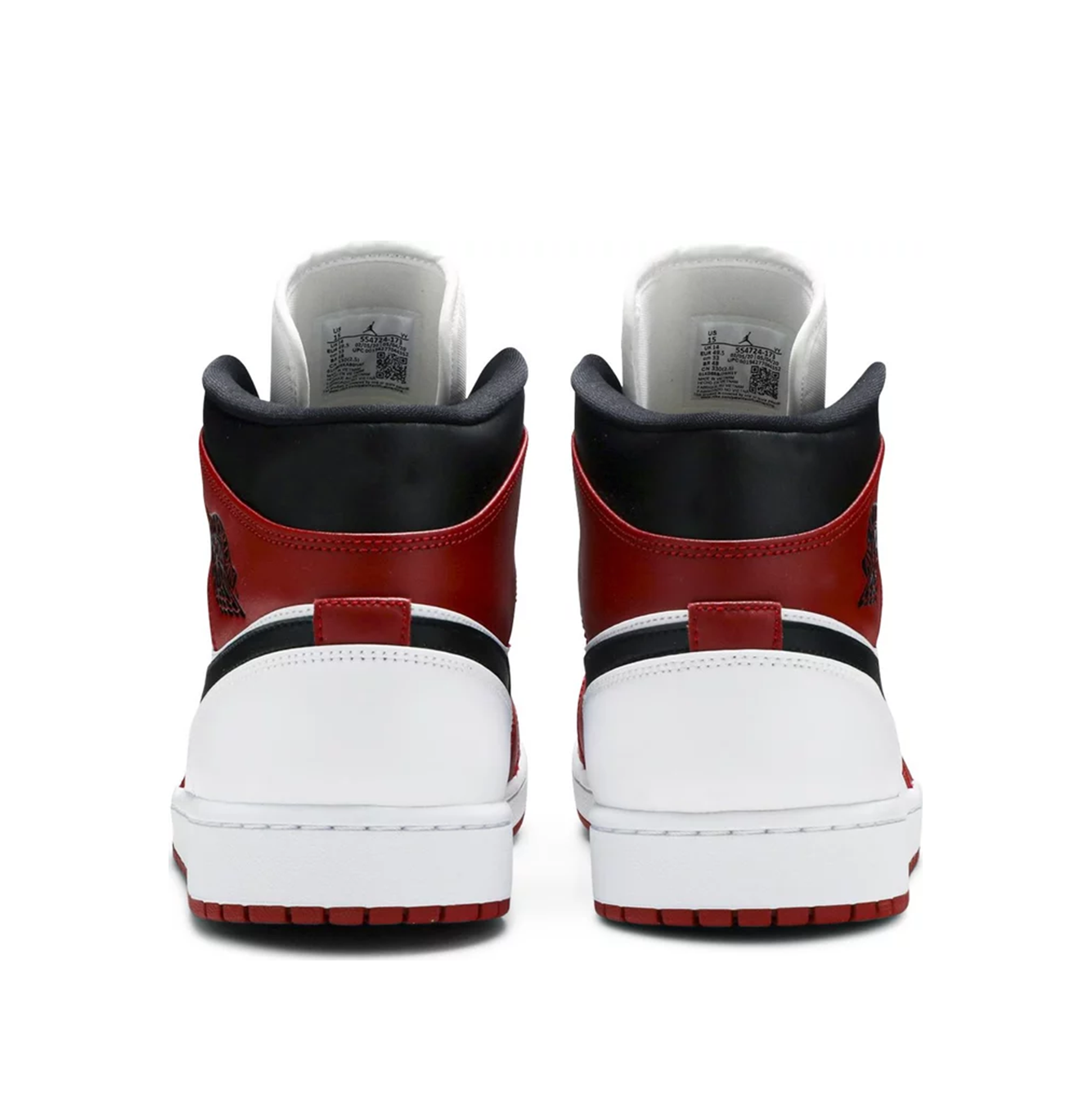 Дизайн кросівок Air Jordan 1 Mid 'Chicago' включає переважно білий шкіряний верх, що контрастує з накладками Gym Red та чорним Nike Swoosh на бічній стороні. Дизайн також включає логотип Air Jordan Wingman на п'ятковій частині, чорну систему шнурівки через язик та червону застібку на п'яті, що полегшує взування. Білий носок кросівок також має перфорацію, яка забезпечує безперешкодний потік повітря. Біла гумова проміжна підошва кросівок забезпечує комфорт завдяки поглинанню ударів, а підошва Gym Red має протектори для оптимального зчеплення з різними поверхнями.