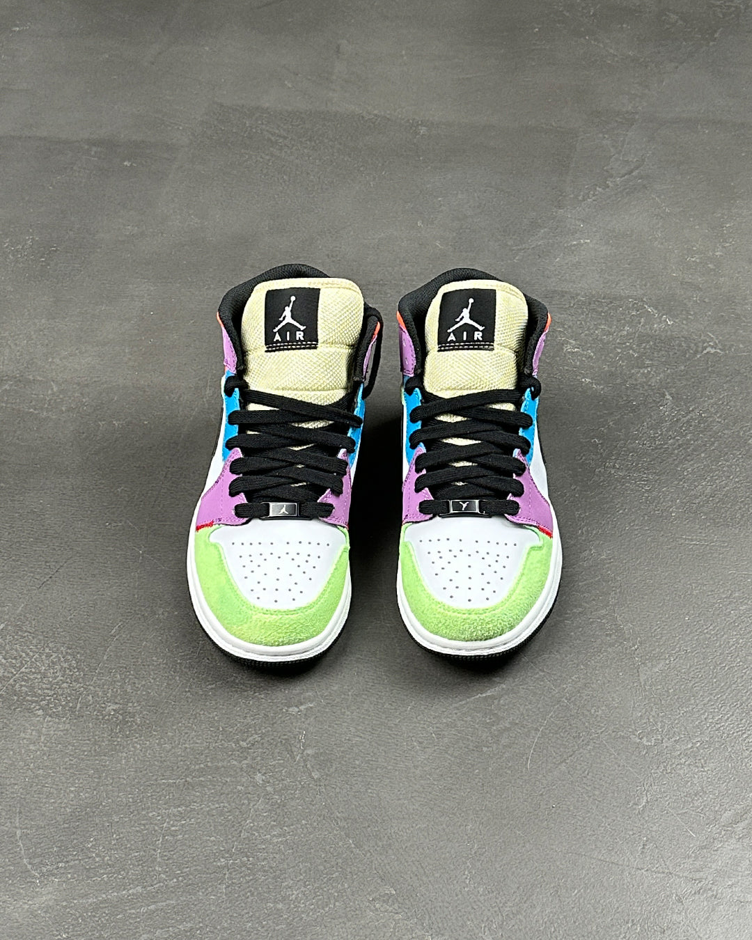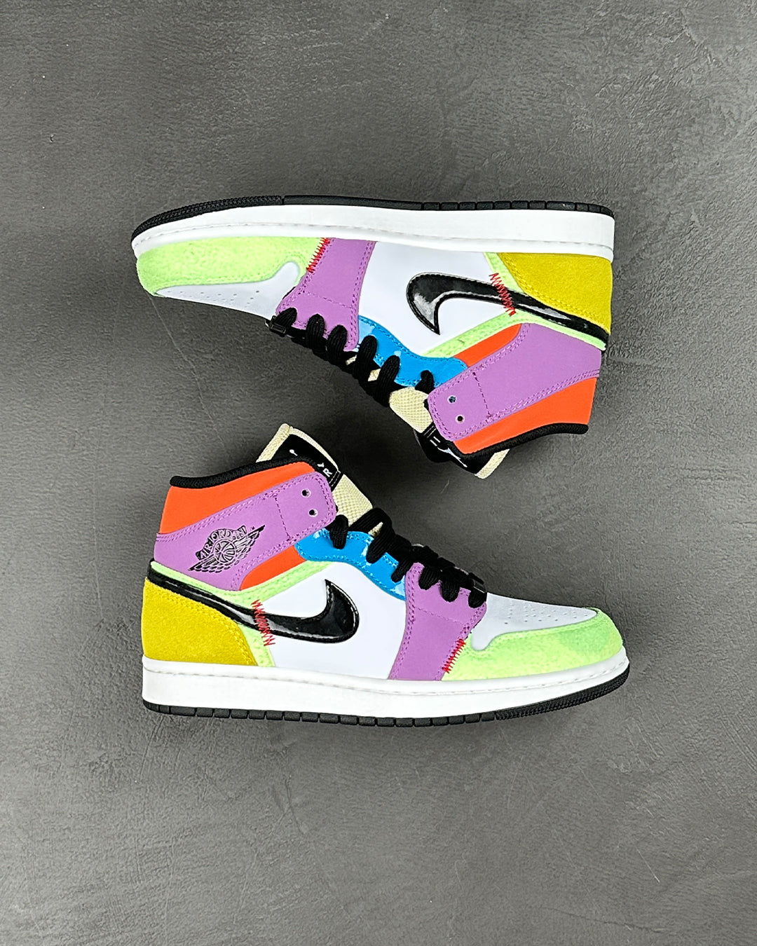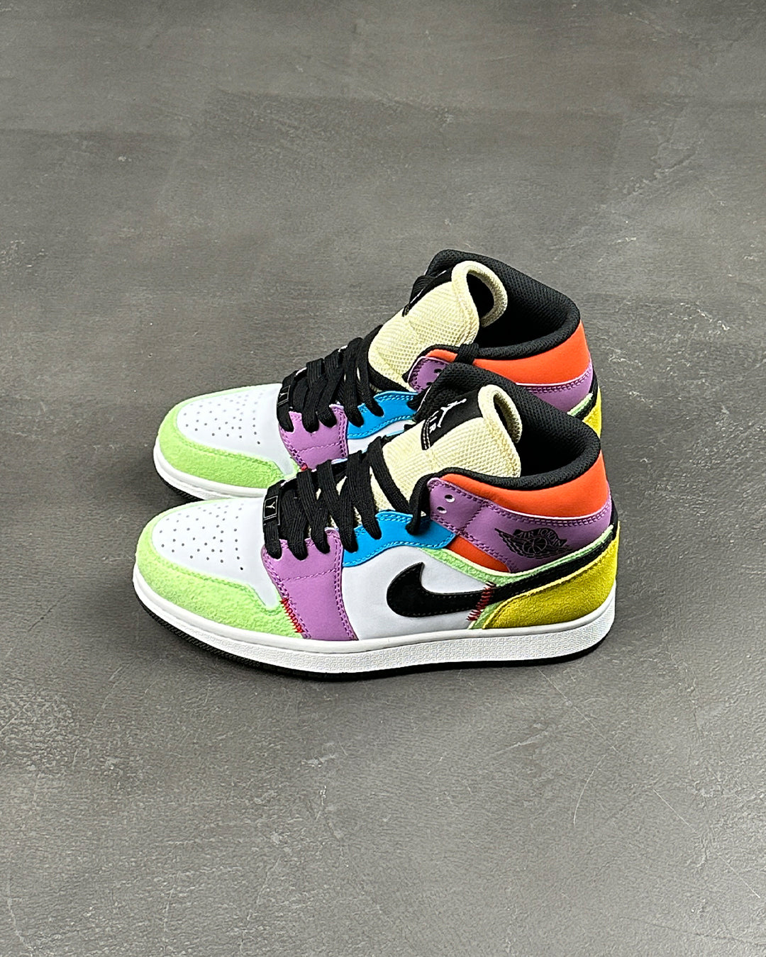 Білі шкіряні носки і бічні панелі надають просту основу для дизайну, після чого всі інші елементи верхньої частини доволі різноманітні. Багатий фіолетовий, синій і червоний акценти гармонійно поєднуються з пастельними відтінками зеленого та жовтого, створюючи привабливу сполуку теплих і спокійних тональностей. Але деталі тут не обмежуються: також використано суміш матеріалів, від шкіри до замші та нубуку.