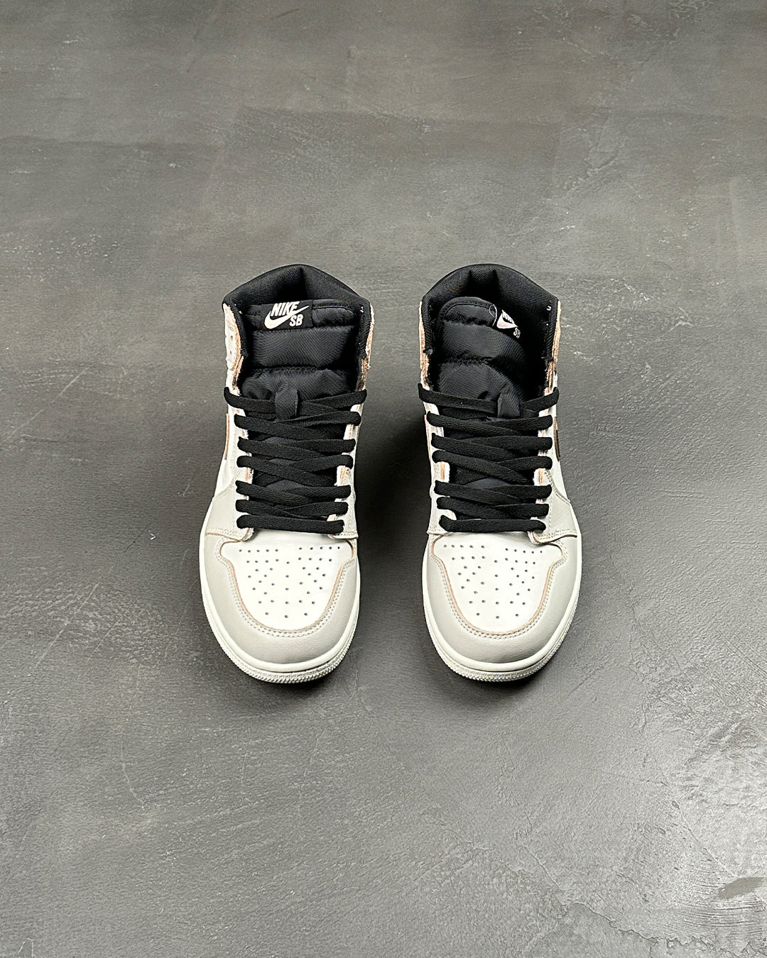 Кросівки Air Jordan SB 1 Retro High відображають вплив десятиліть на іконічне взуття на культуру скейтбордингу. Представлені у травні 2019 року, ці оновлені "NYC to Paris" відзначаються класичним верхом зі шкіри, яке піддане обробці з ефектом зносу, що приховує альтернативний відтінок. Власна брендовість повертається завдяки бічним "Swooshes" (знак Nike), ярлику на язичку з логотипом Jumpman та логотипу Wings. Вкапсульований блок Air і концентрична підошва з колами залишаються вірними цьому класичному силуету.