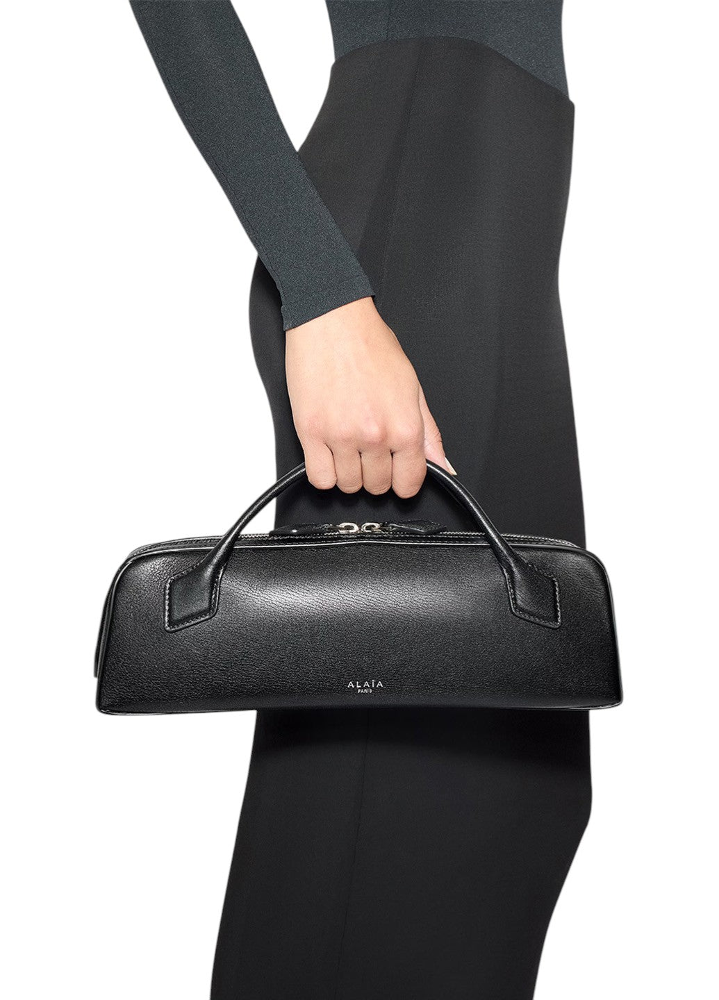 ALAIA Le Teckel Clutch In Shiny Goatskin Black
