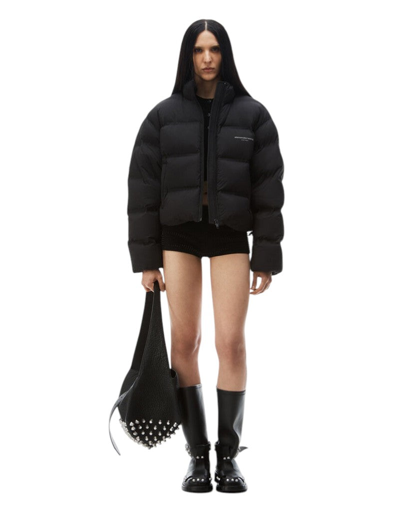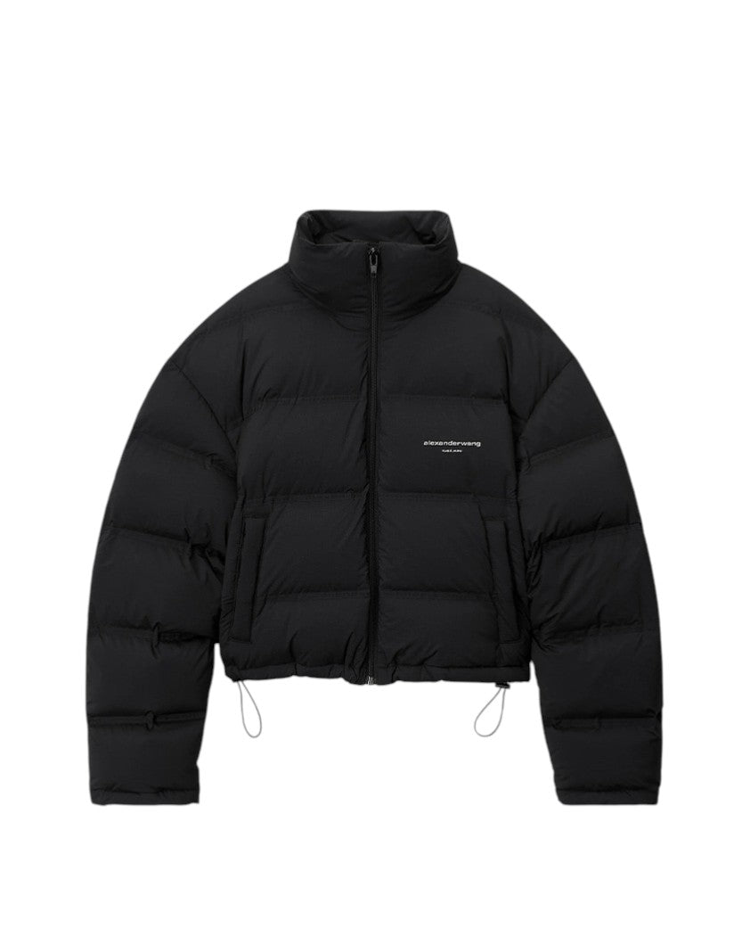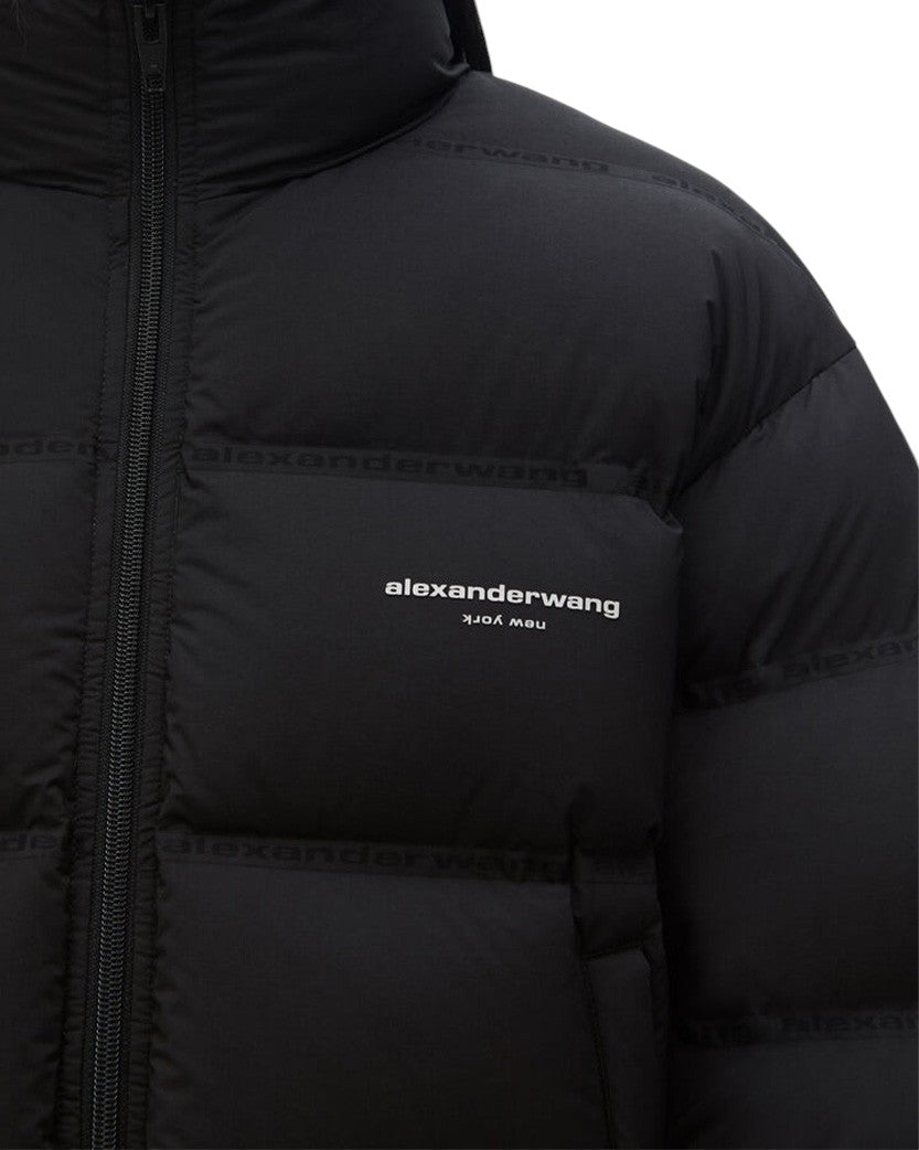 Alexander Wang Cropped Puffer Coat With Reflective Logo Black
