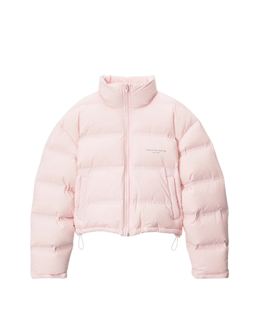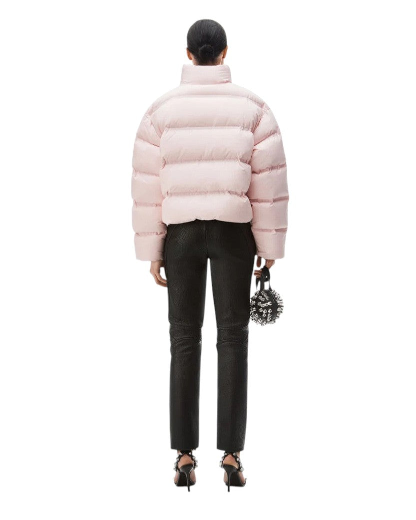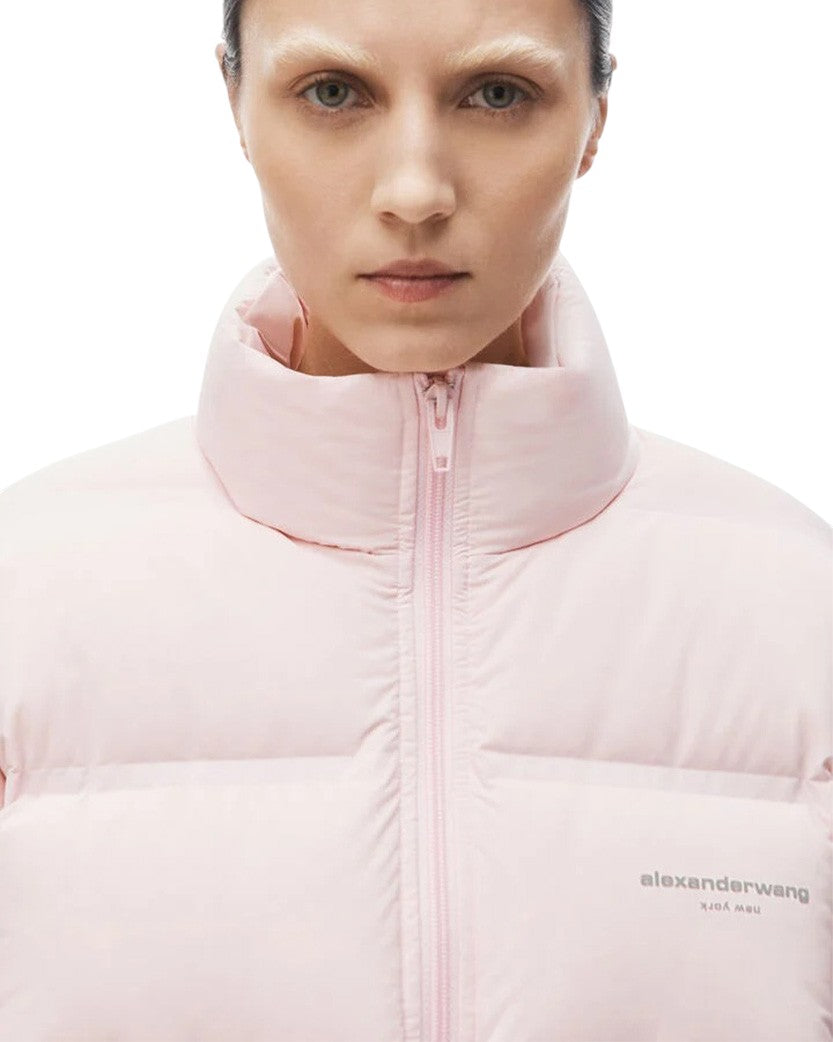 Alexander Wang Cropped Puffer Coat With Reflective Logo Pink