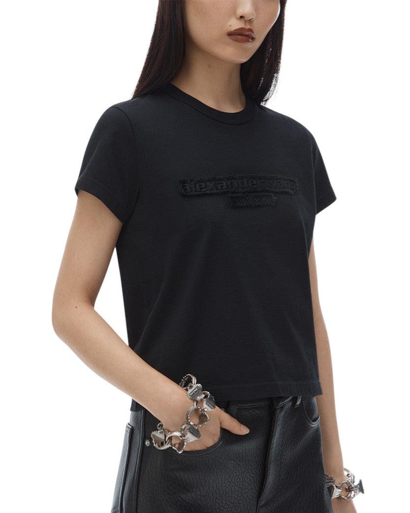 Alexander Wang Distressed Logo Shrunken Tee Black