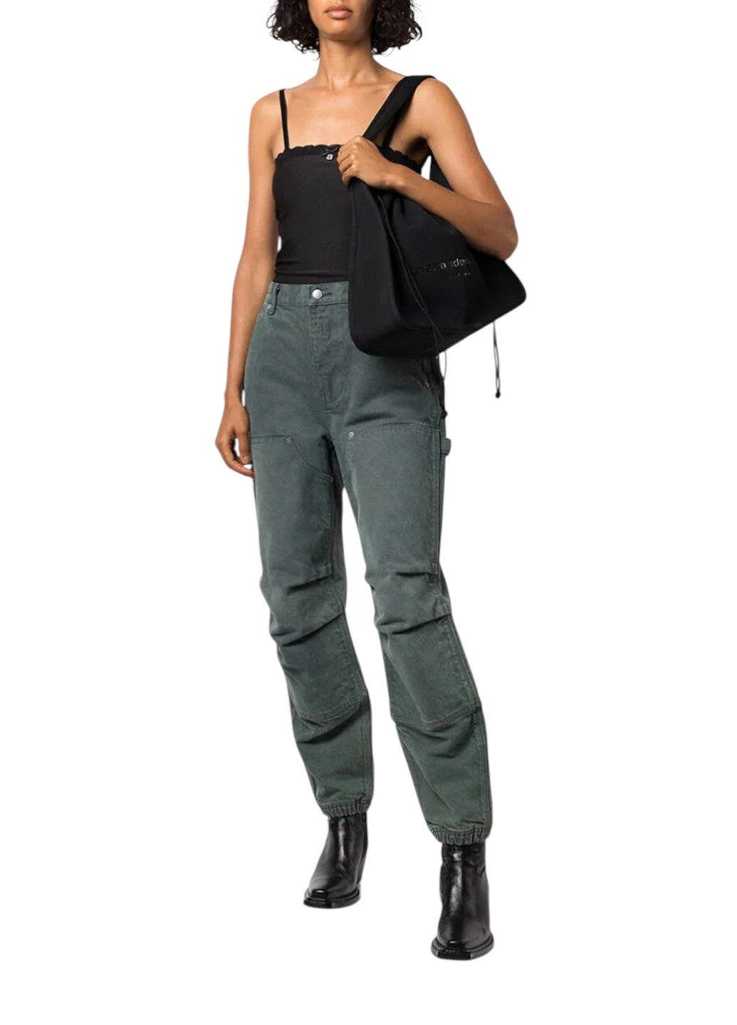 Нью-йоркський бренд Alexander Wang поєднав спортивний урбаністичний стиль із сучасним чуттям у сумці Ryan, вона виготовлена з ребристої трикотажної тканини з верхом на зав'язках і структурованим плечовим ременем, що створює неповторний повсякденний образ. Спереду на ній витканий логотип бренду.