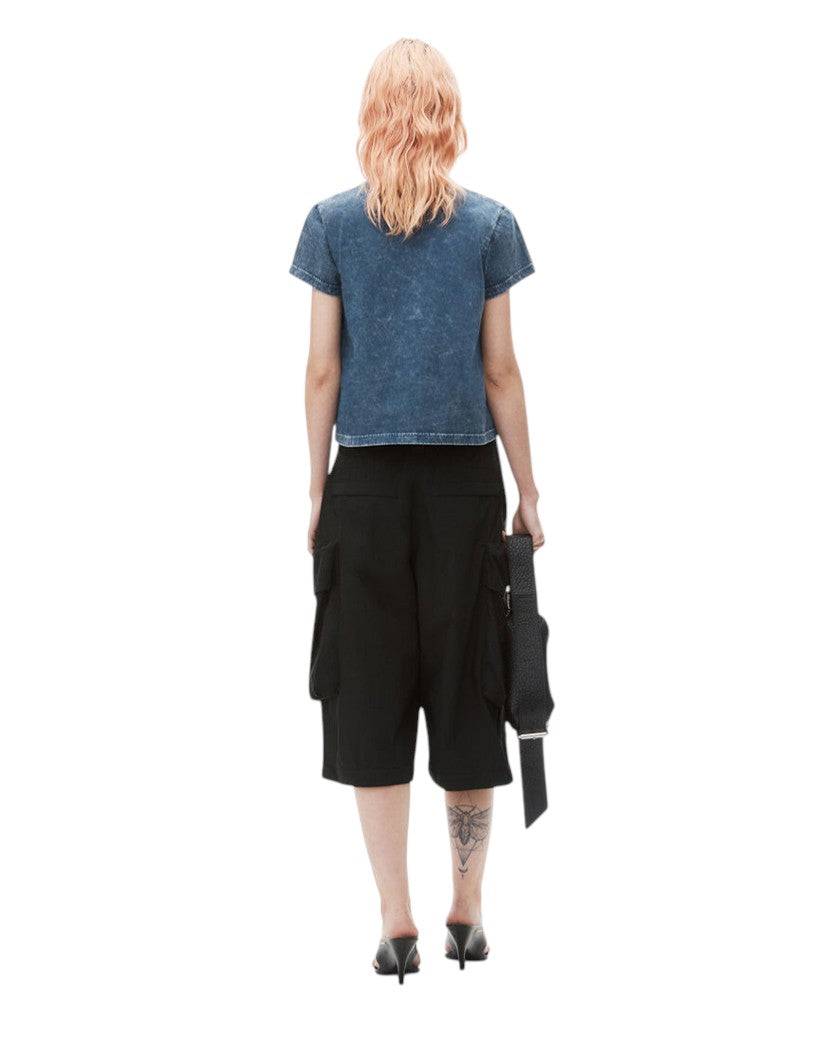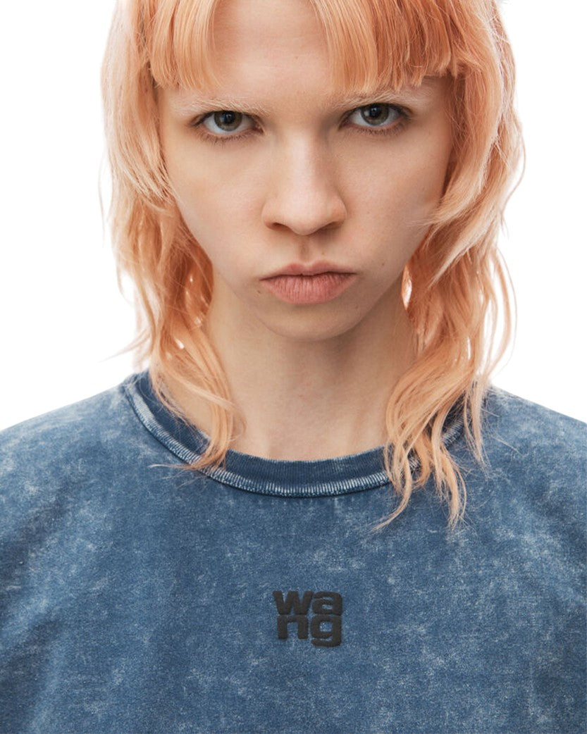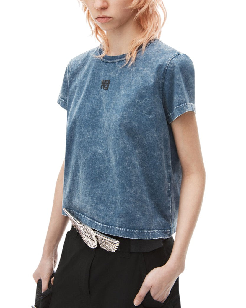Alexander Wang Puff Logo Shrunken Tee In Cotton Jersey Faded Blue