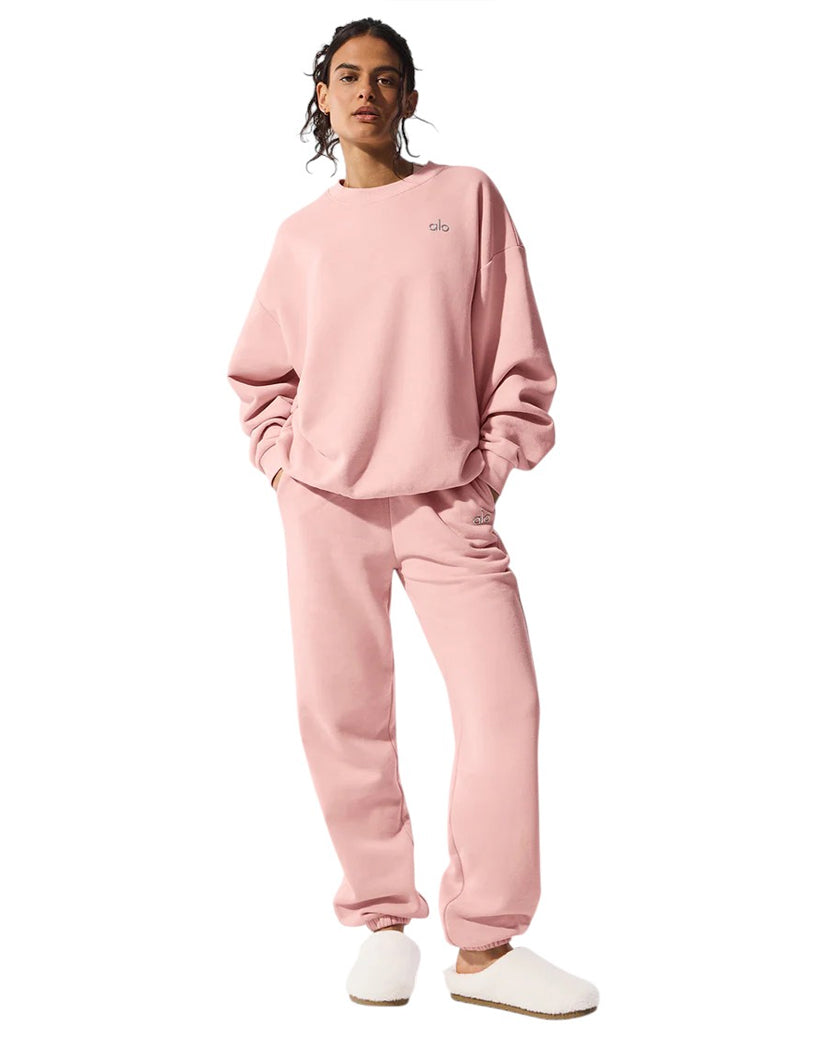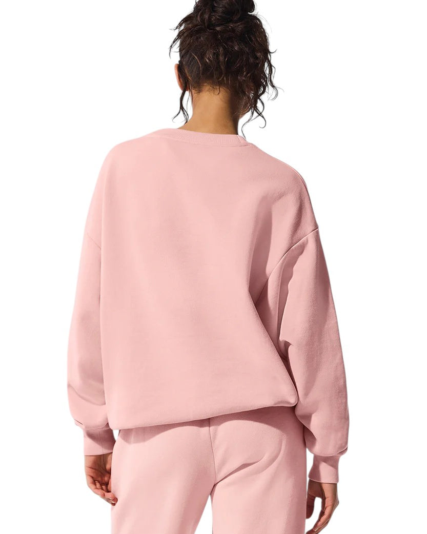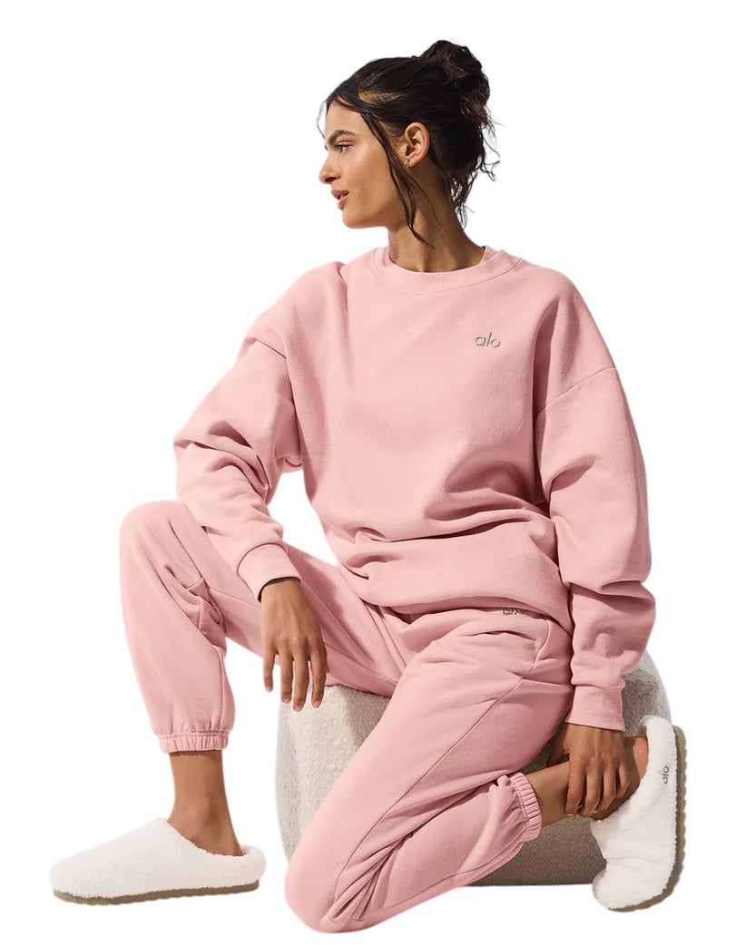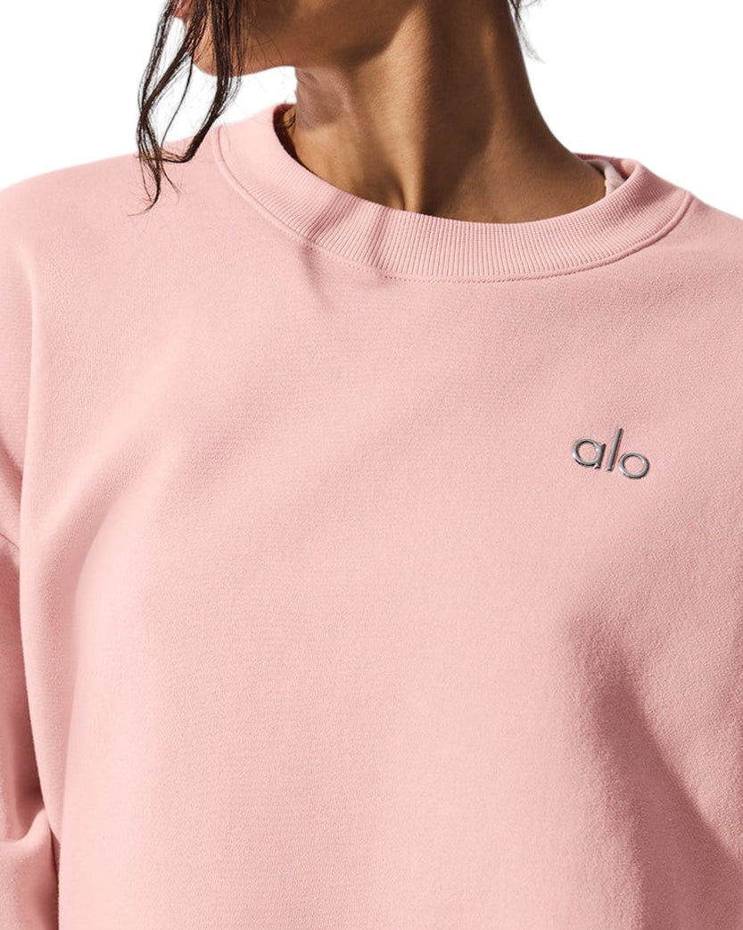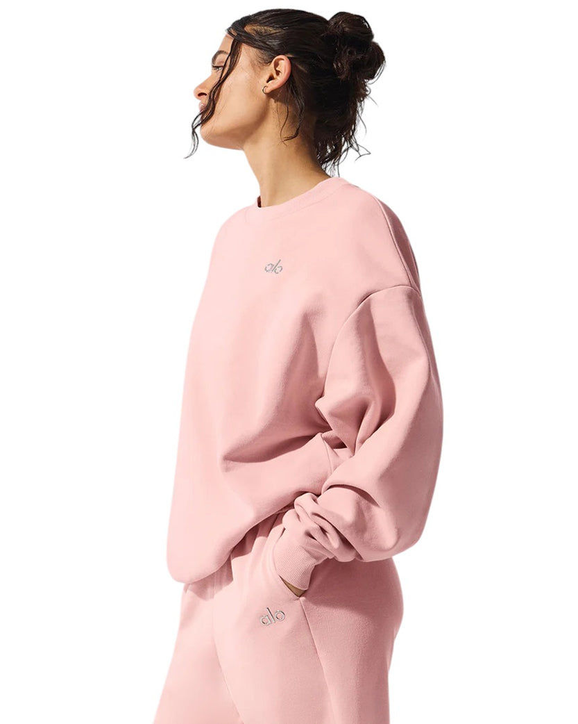 Alo Yoga Accolade Crew Neck Pullover Silver Logo Pink