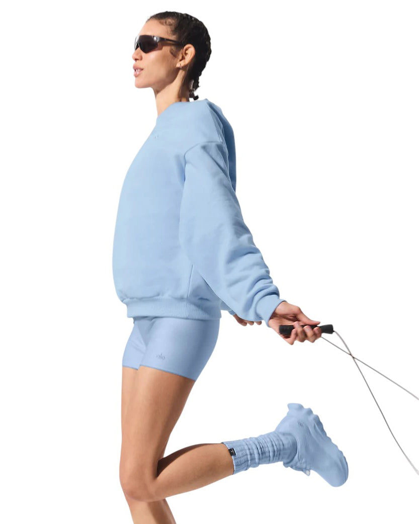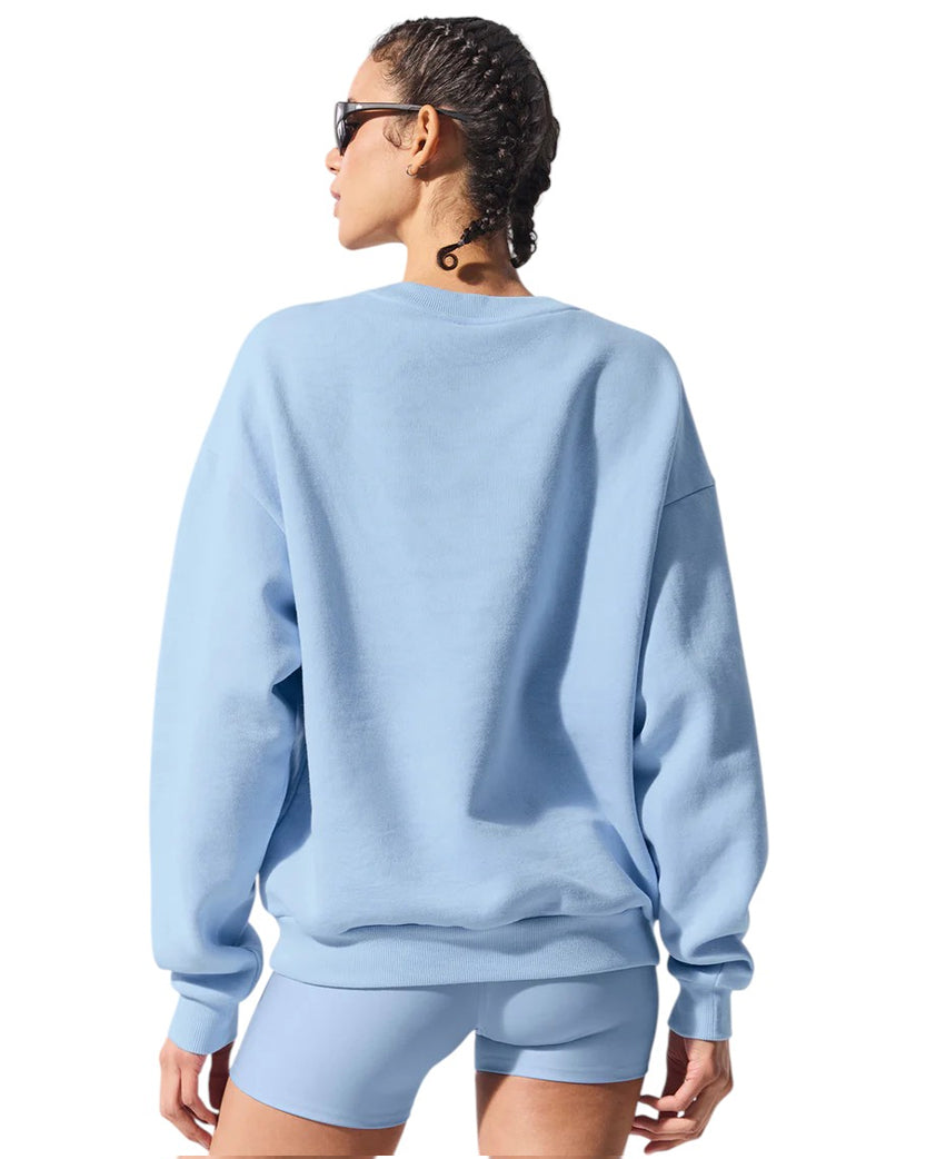 Alo Yoga Accolade Crew Neck Pullover Silver Logo Seashell Blue
