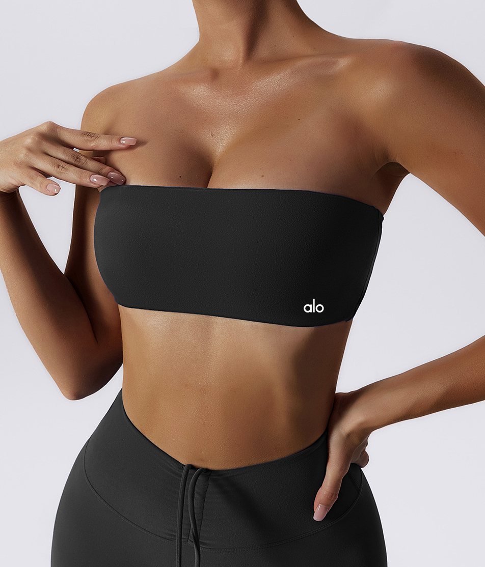 Alo Yoga Bandeau Top — елегантний і стильний топ без бретелей, ідеальний для занять йогою, фітнесом або відпочинку. Виготовлений з м'якого, еластичного матеріалу, він забезпечує комфорт і підтримку під час рухів, не обмежуючи свободу. Топ має сучасний, мінімалістичний дизайн, що підкреслює лінії тіла, і може бути чудовою основою для спортивних комплектів або для носіння під легким верхнім одягом.