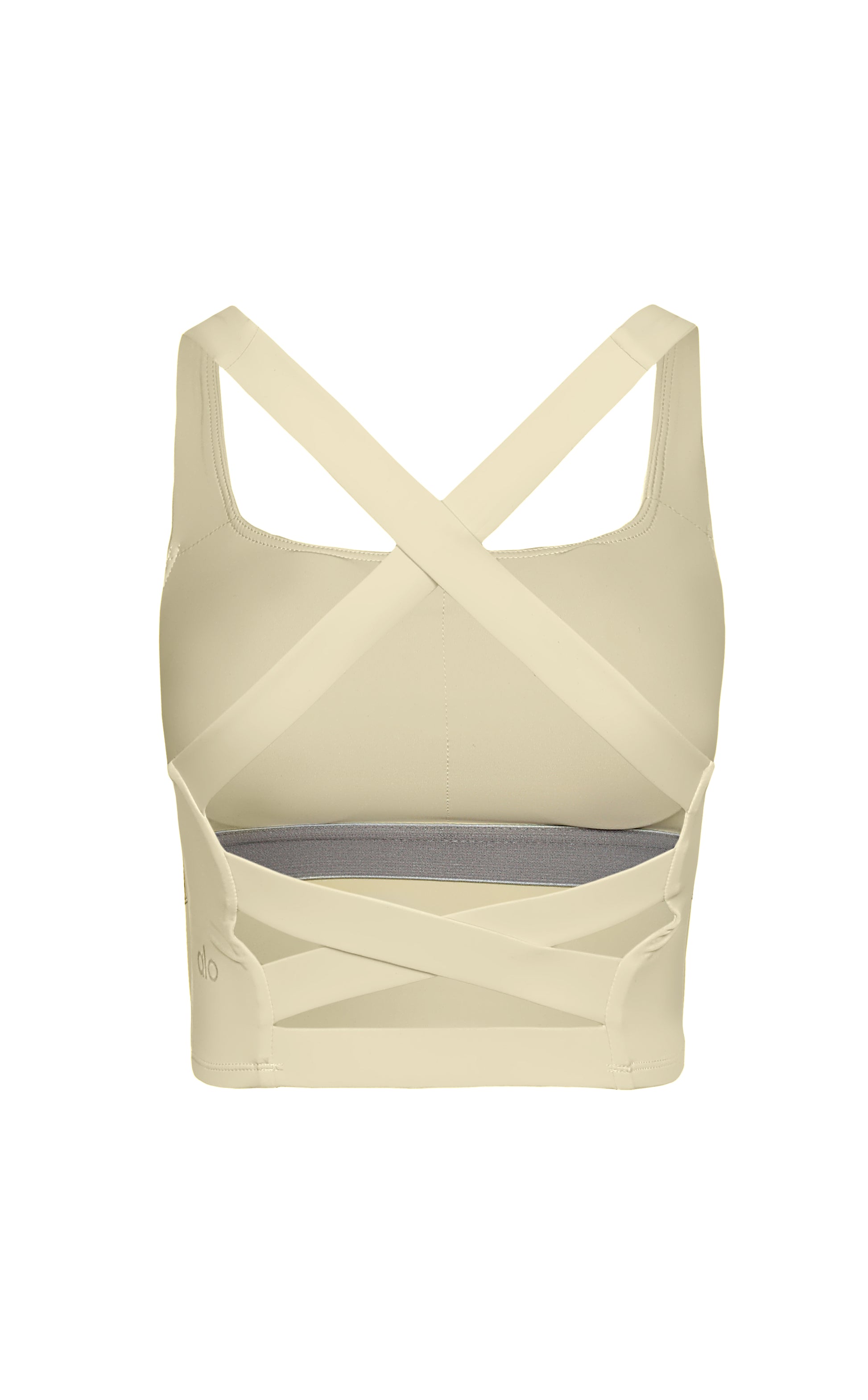 Топ від Alo Yoga відзначається стильним дизайном і високою якістю завдяки м'якій та легкій тканині. Він має ефектну спинку на ремінцях та глибокий виріз, що робить його ідеальним для студійних занять або повсякденного носіння. Розроблений для будь-якого розміру, цей топ забезпечує легку підтримку та комфорт.