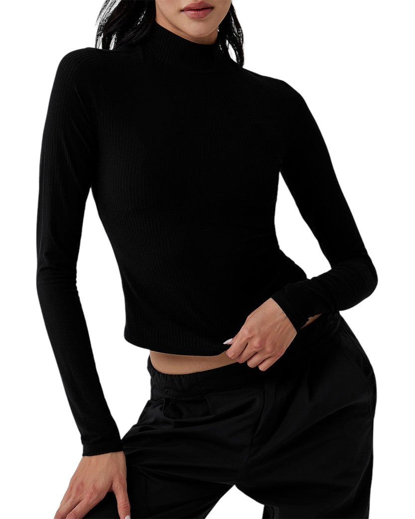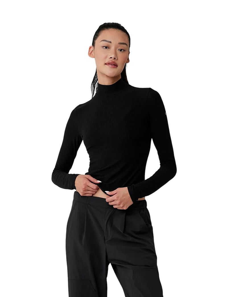 Alo Yoga Ribbed Sea Coast Mockneck Long Sleeve Black