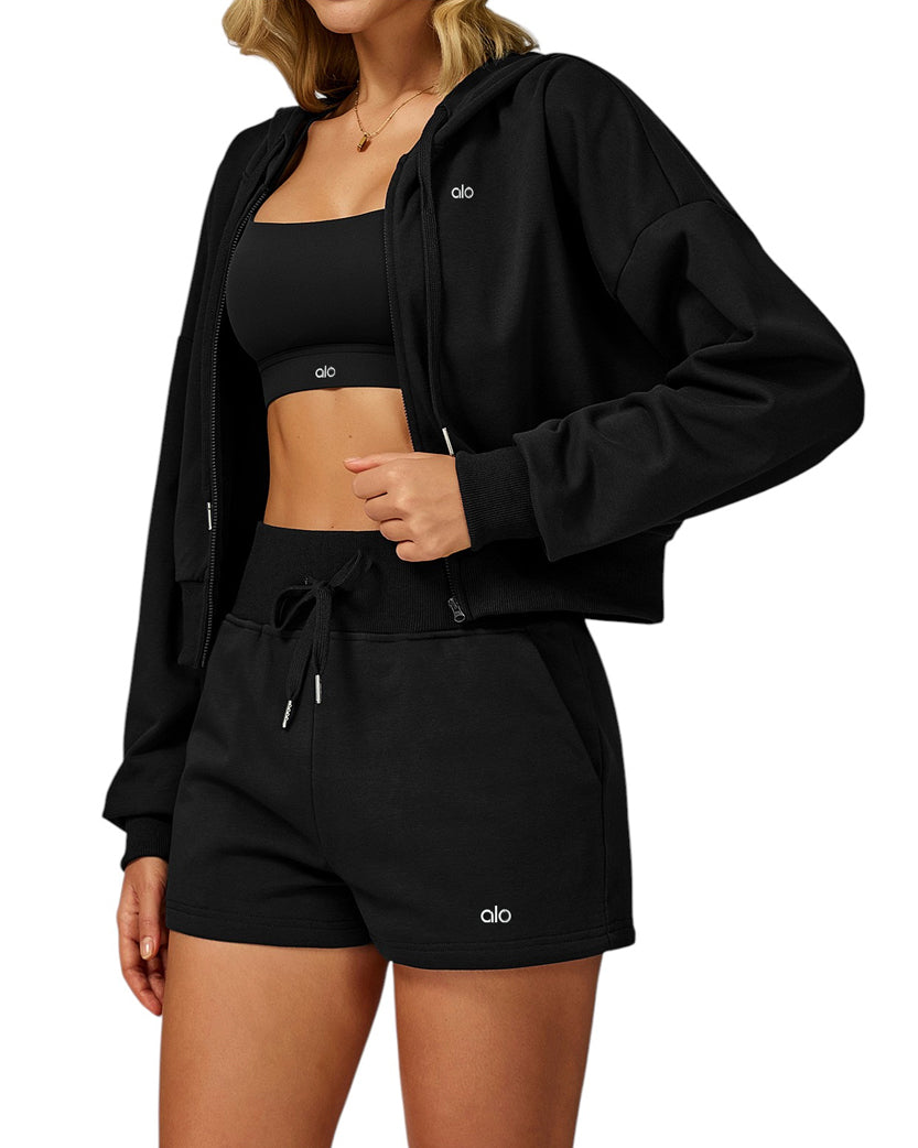Alo Yoga Serenity Cropped Zip Hoodie Black EWK20301-BK