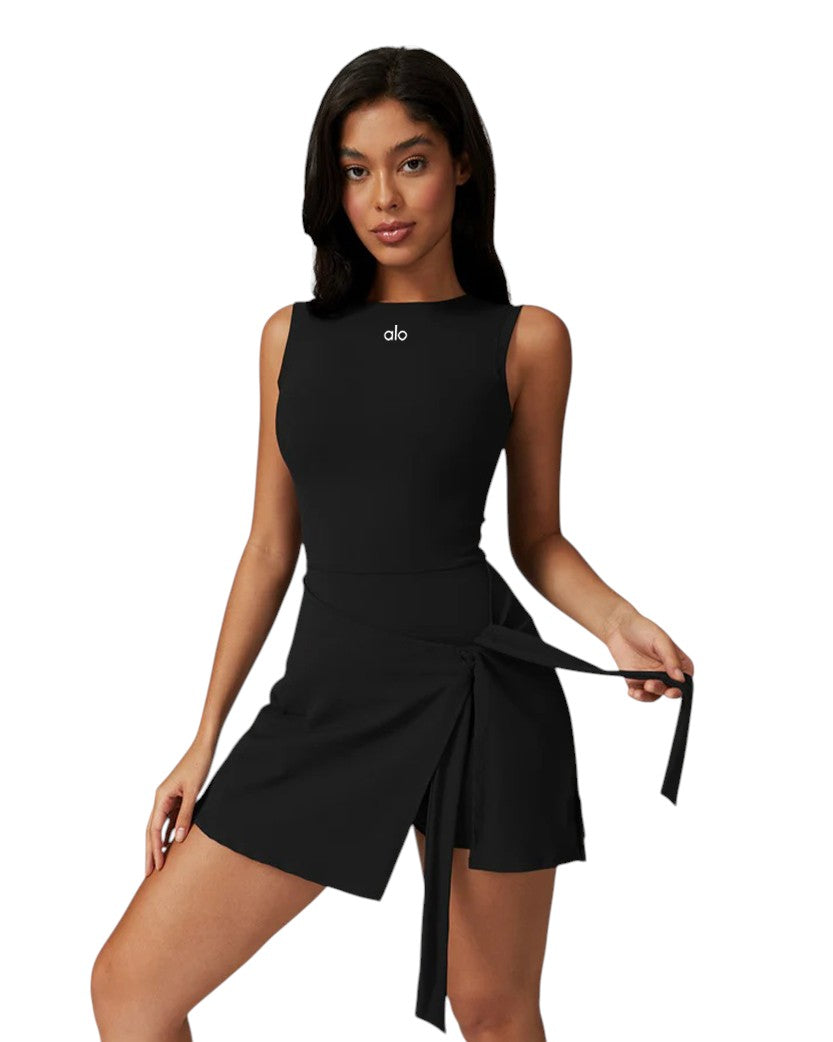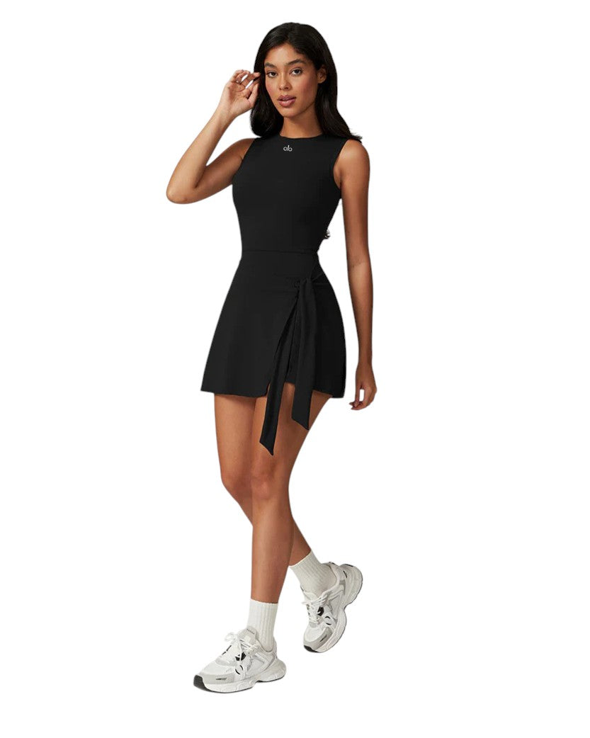 Alo Yoga Tennis Dress — це поєднання спортивного стилю та жіночного силуету. Приталений крій з вшитими шортами забезпечує впевненість і свободу рухів, а м’яка еластична тканина комфортно прилягає до тіла. Виріз на спині додає акцент, а довжина вище коліна — ідеальна для активного дня.