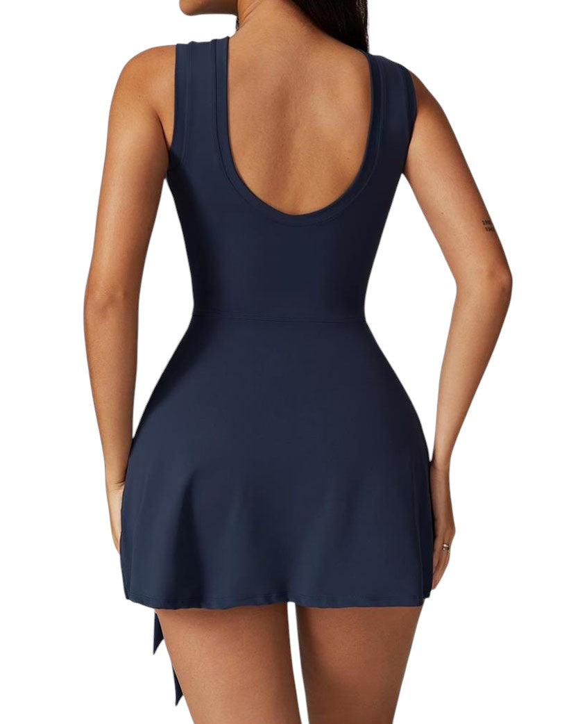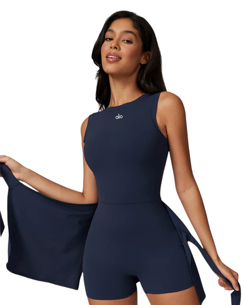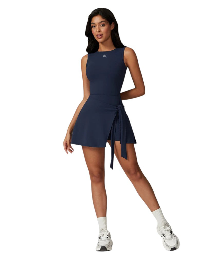 Alo Yoga Tennis Dress — це поєднання спортивного стилю та жіночного силуету. Приталений крій з вшитими шортами забезпечує впевненість і свободу рухів, а м’яка еластична тканина комфортно прилягає до тіла. Виріз на спині додає акцент, а довжина вище коліна — ідеальна для активного дня.