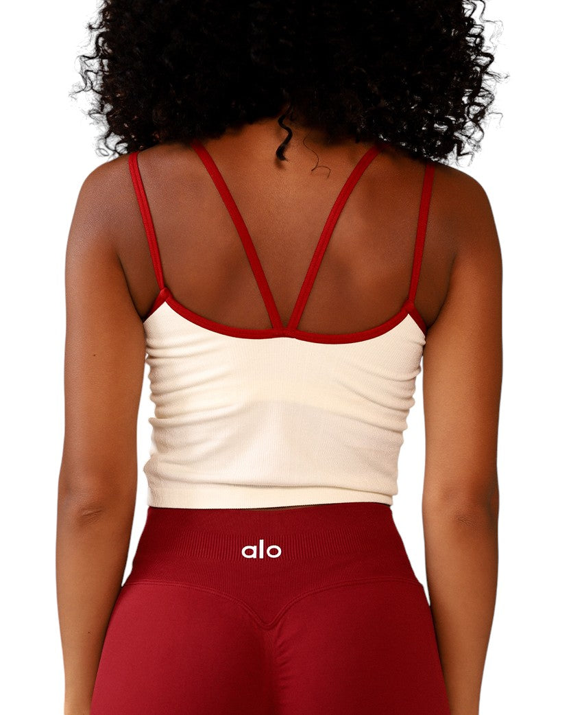 Alo Yoga Top White with Red Straps – це стильний спортивний топ, виконаний у класичному білому кольорі з яскравими червоними бретелями для контрастного акценту. Завдяки еластичній і дихаючій тканині забезпечує ідеальну посадку і комфорт під час тренувань. Мінімалістичний дизайн дозволяє легко поєднувати його як зі спортивним, так і з повсякденним одягом.