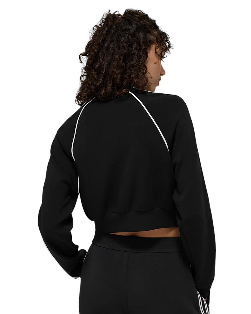 Виконана з м’якої, еластичної тканини, що складається з 50% переробленого поліестеру, 45% модалу та 5% еластану, куртка приємна до тіла, дихає та забезпечує комфорт у русі. Має злегка вільну посадку та укорочений крій, що робить її ідеальною для поєднання з Track Star Mini Skirt, шортами чи легінсами для створення стильного, сучасного образу у спортивному дусі.