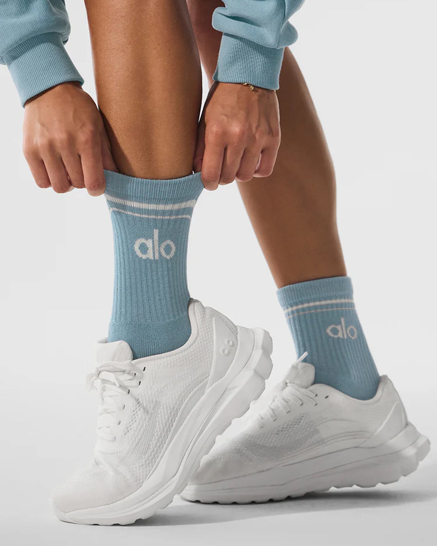 Alo Yoga Unisex Half-Crew Throwback Socks Blue/White