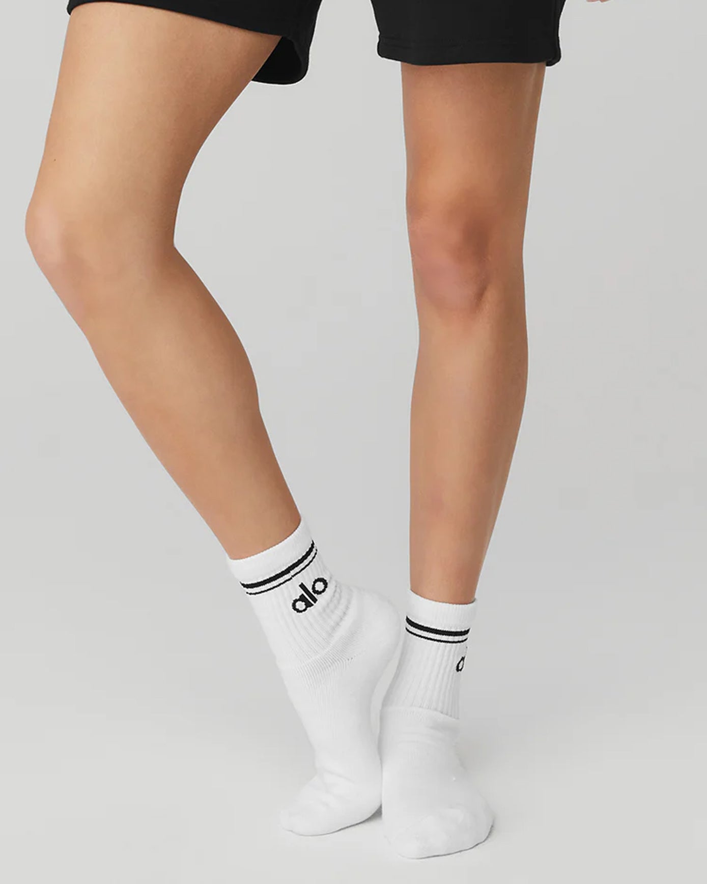Alo Yoga Unisex Half-Crew Throwback Socks White/Black