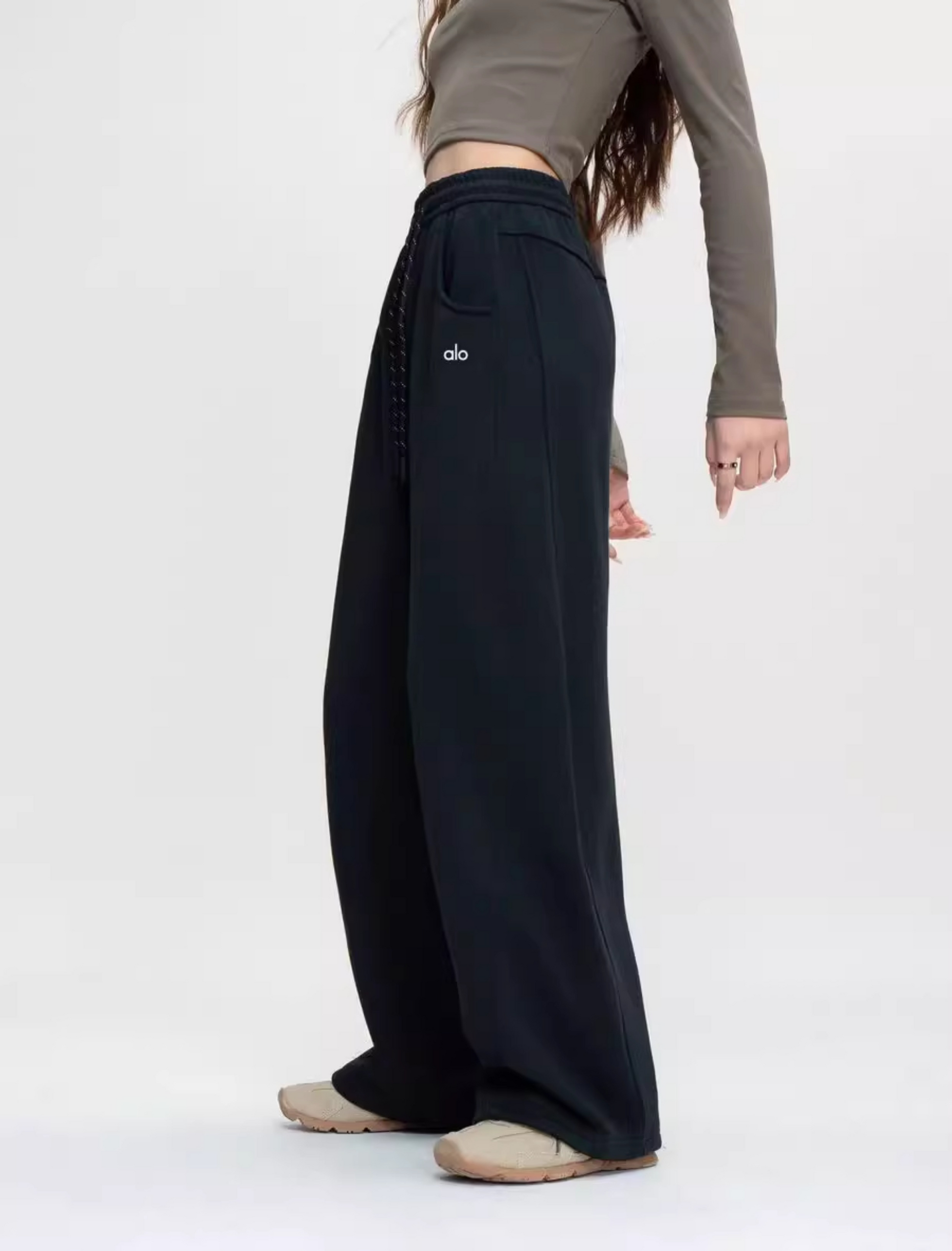Alo Yoga Wide Leg Sweatpants — це стильні та зручні штани з широкими штанинами, які поєднують комфорт і сучасний дизайн. Виготовлені з м’якої та приємної на дотик тканини, вони ідеально підходять для відпочинку, подорожей або повсякденного носіння. Висока посадка з еластичним поясом на шнурку забезпечує зручну фіксацію, а розкльошений силует додає елегантності та свободи рухів. Мінімалістичний дизайн із фірмовим логотипом Alo легко поєднується з худі, кроп-топами або спортивними бра для створення стильного та невимушеного образу.
