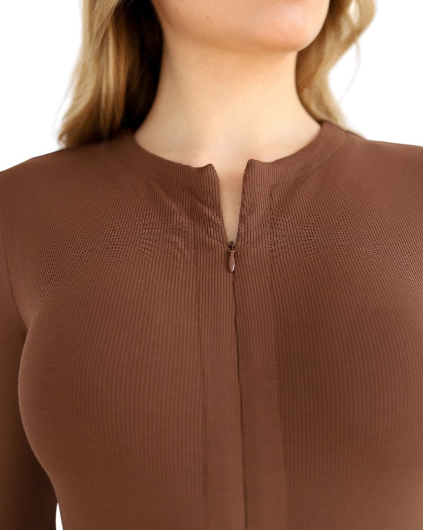 Alo Yoga Zip Bodysuit — це елегантний та функціональний боді, створений для активного способу життя та стильного вигляду. Виготовлений із фірмової еластичної тканини, яка забезпечує ідеальну посадку та комфорт протягом дня. Дизайн із передньою застібкою-блискавкою додає сучасного вигляду та дозволяє регулювати глибину вирізу. Облягаючий силует підкреслює фігуру, а дихаючий матеріал забезпечує комфорт.
