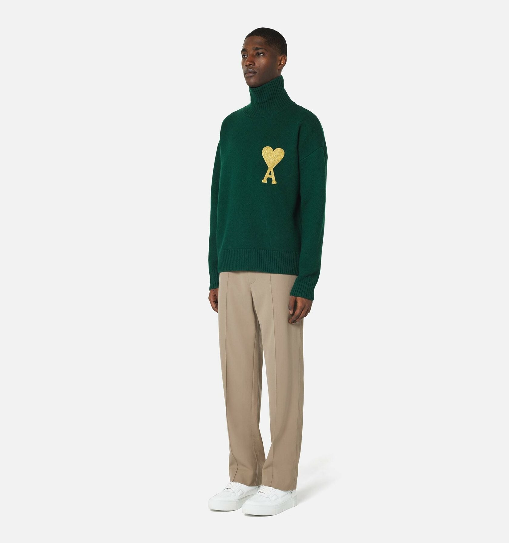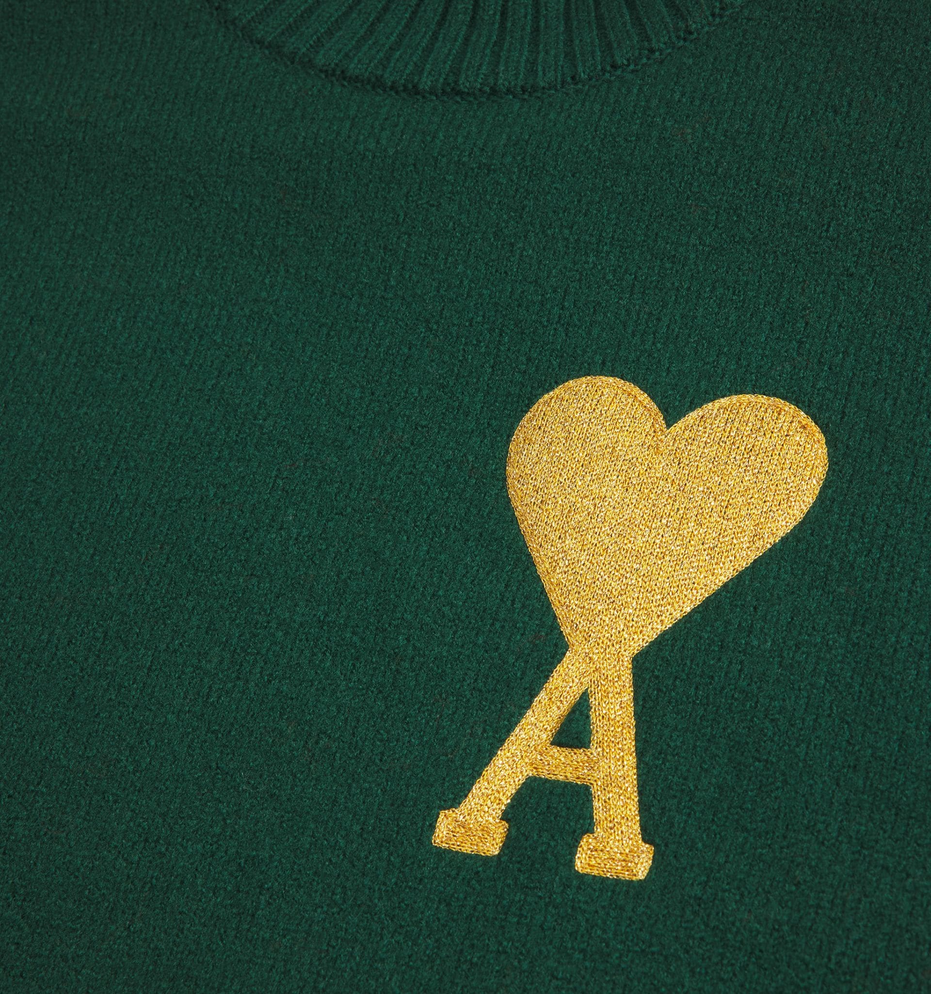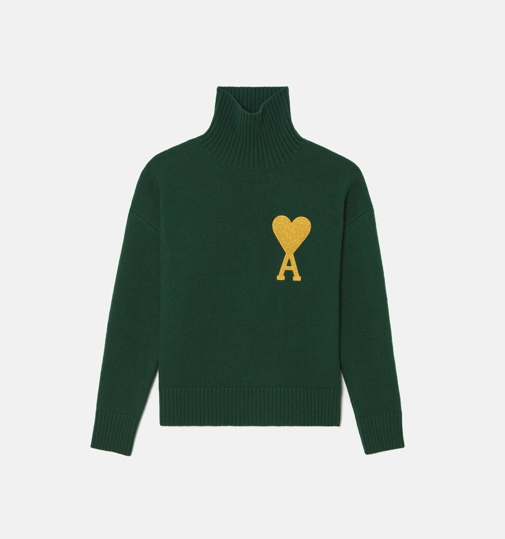 AMI Paris Ami de Coeur Lurex Funnel Neck Sweater Green