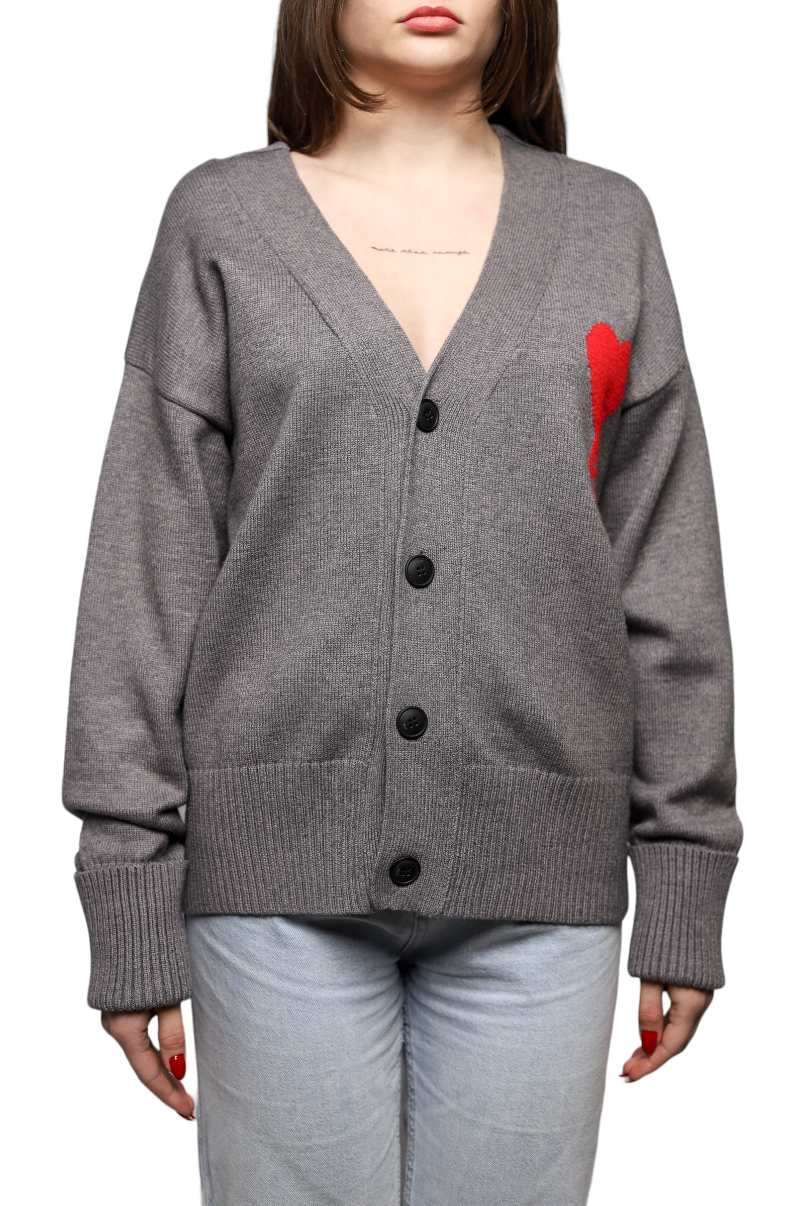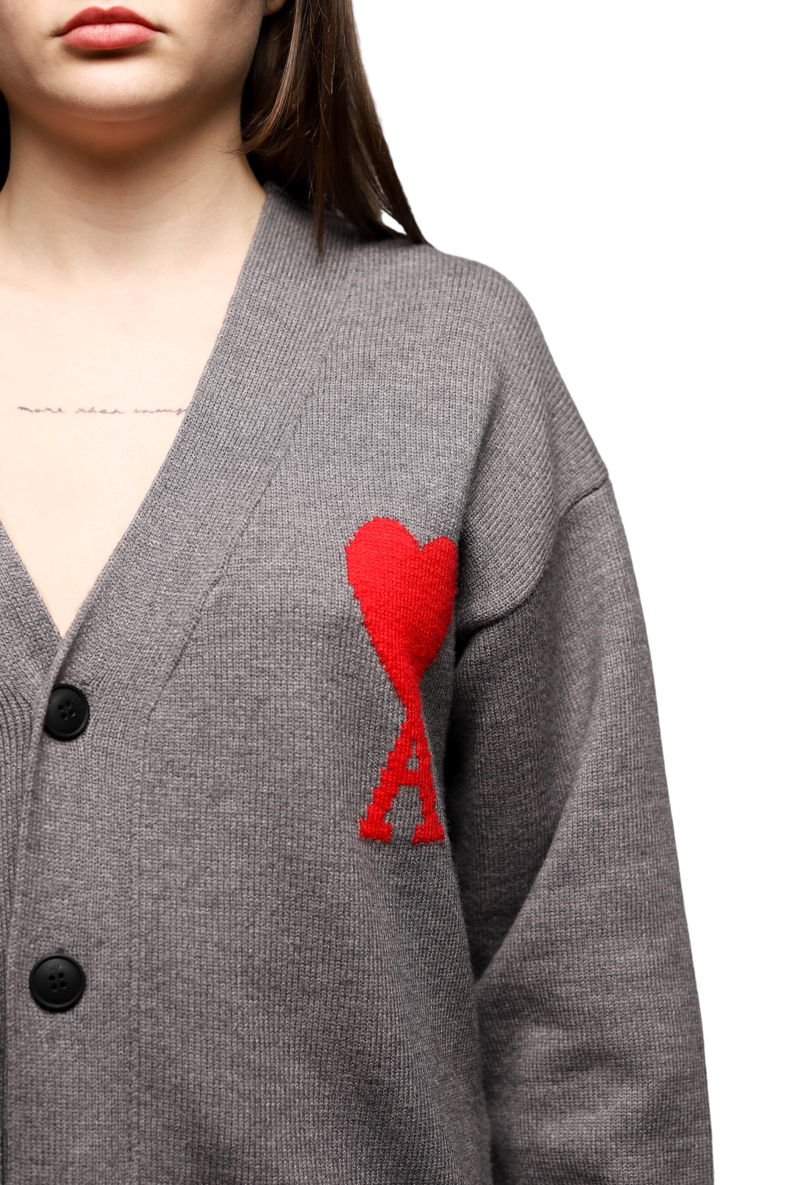 AMI Paris Ami de Coeur Oversize Cardigan Grey