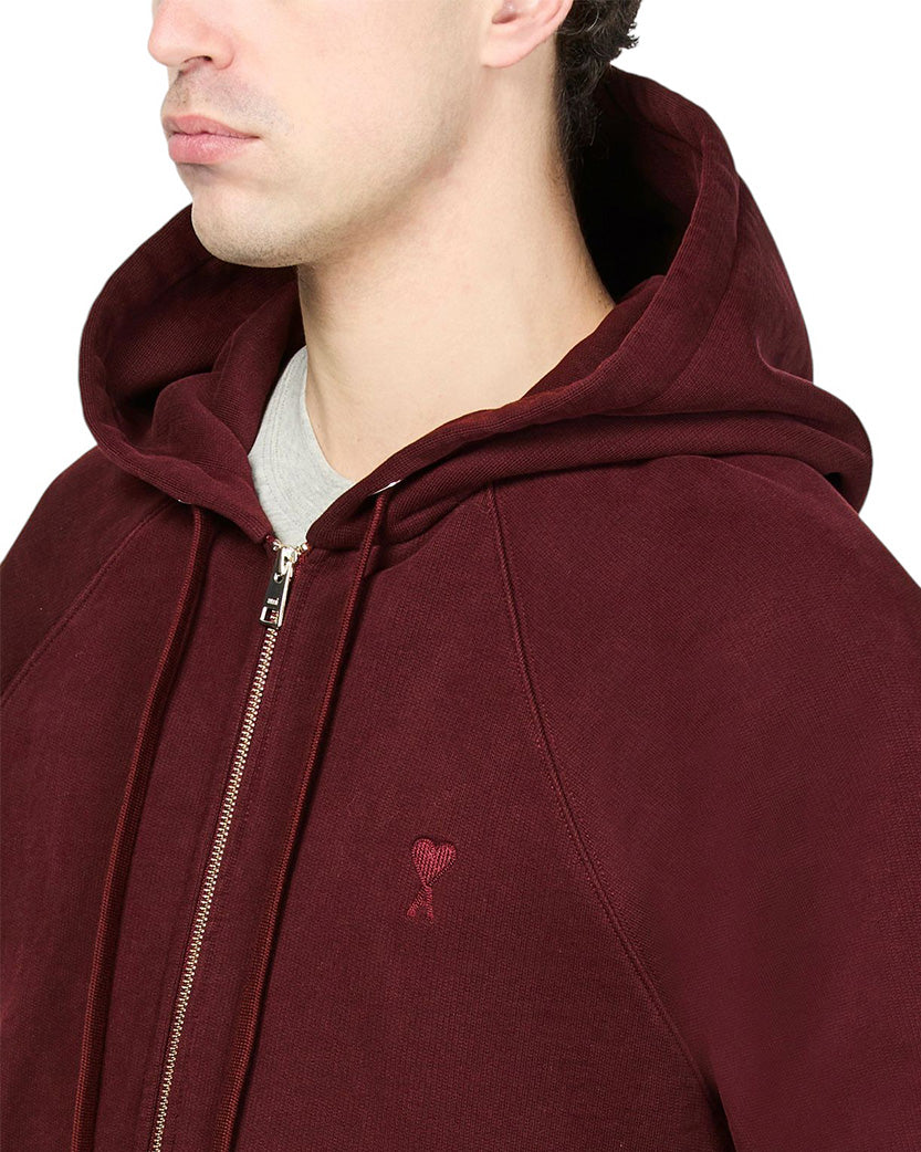 AMI Paris Ami De Coeur Small Heart Zipped Hoodie Burgundy