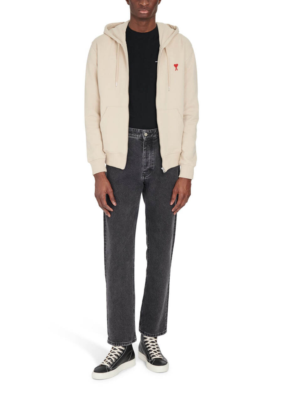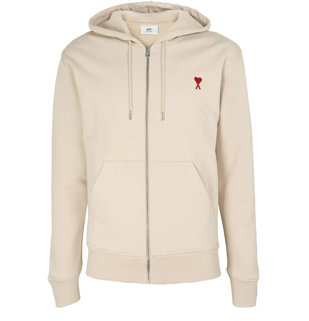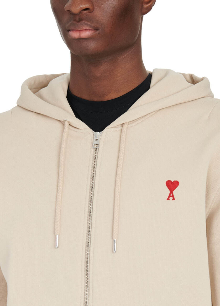 AMI Paris Ami De Coeur Zipped Hoodie Beige
