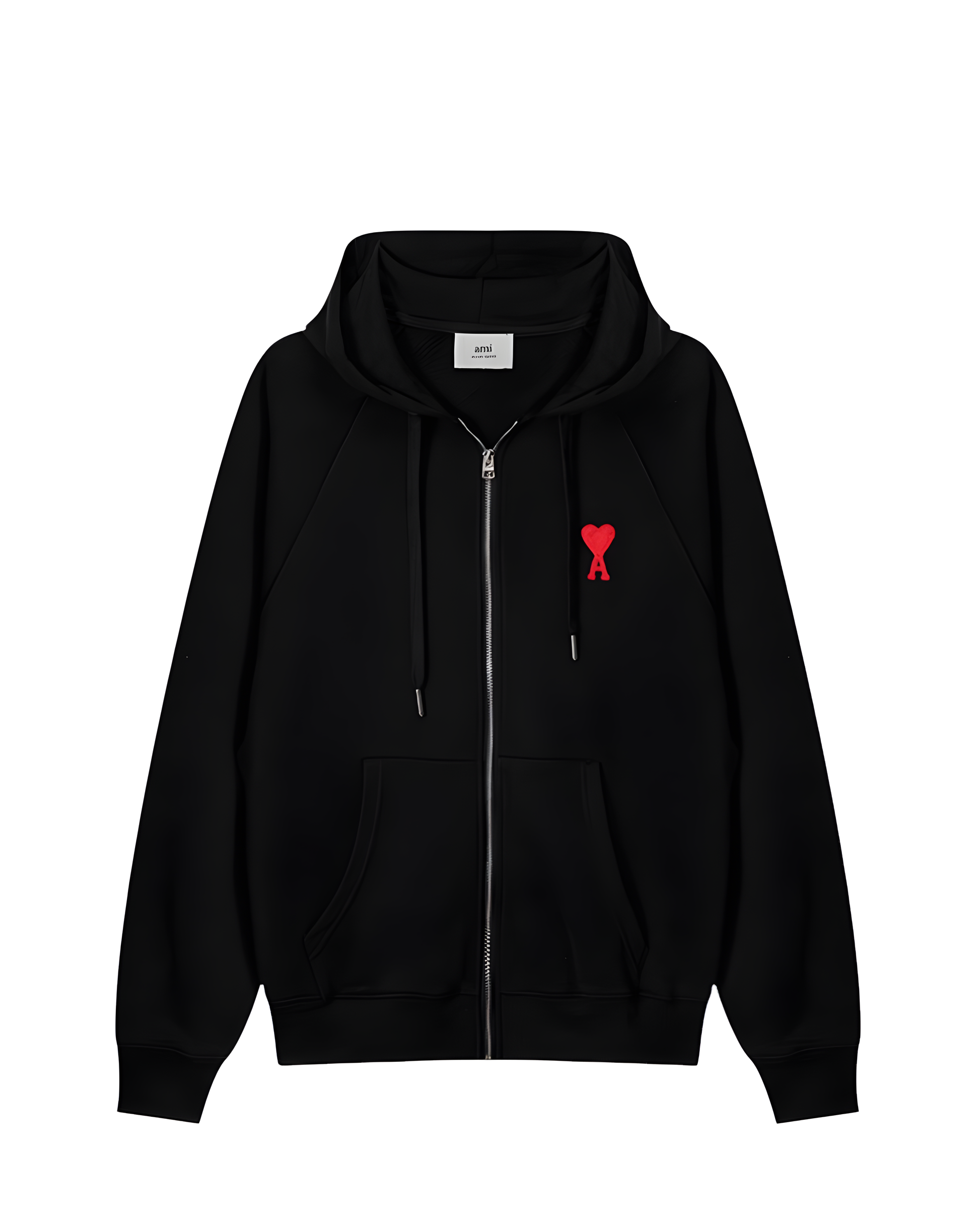 AMI Paris Ami De Coeur Zipped Hoodie Black