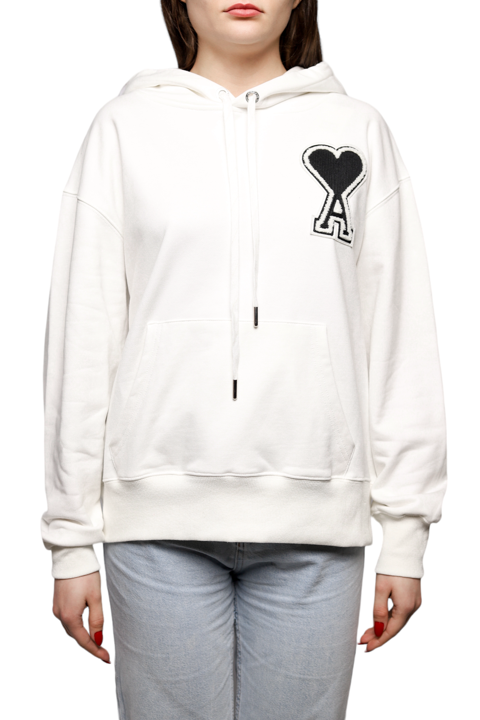 Худі вільного крою від AMI Paris виготовлене з органічної бавовни. Капюшон на шнурку, кишеня-кенгуру, еластичні манжети та поділ. Худі доповнене аплікацією з логотипом бренду.