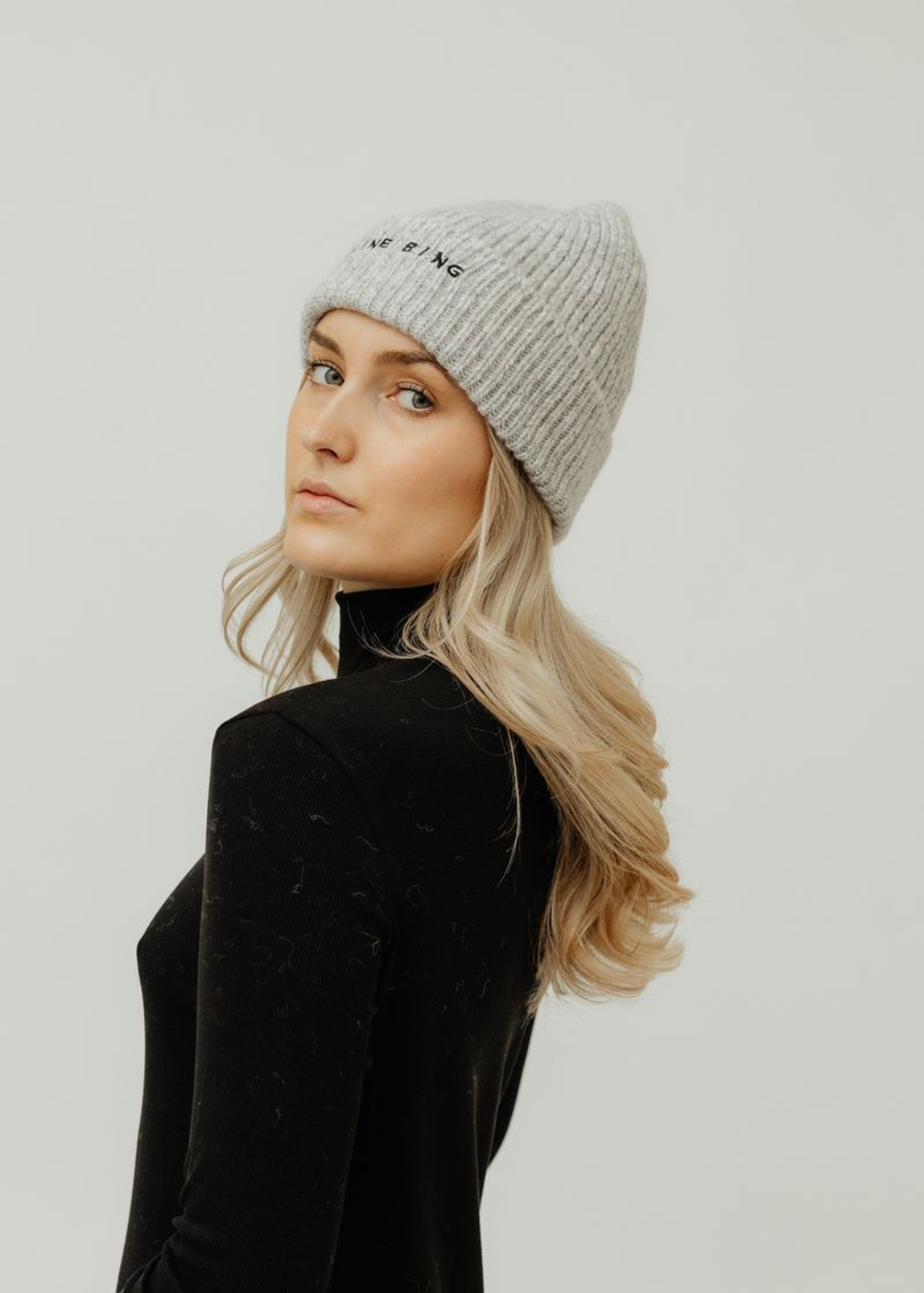 Аксесуар для холодної погоди, виготовлений з розкішної пряжі з вовни альпаки, відзначається текстурою та елегантним дизайном. Повсюдна вертикальна в'язка у вигляді кардиганного шва додає виробу вишуканості та стилю. Особливістю є складені поля з вишитим логотипом бренду ANINE BING, що додає аксесуару преміального вигляду. Такий аксесуар не лише забезпечить комфорт у холодну погоду, але й стане вишуканим елементом гардеробу.