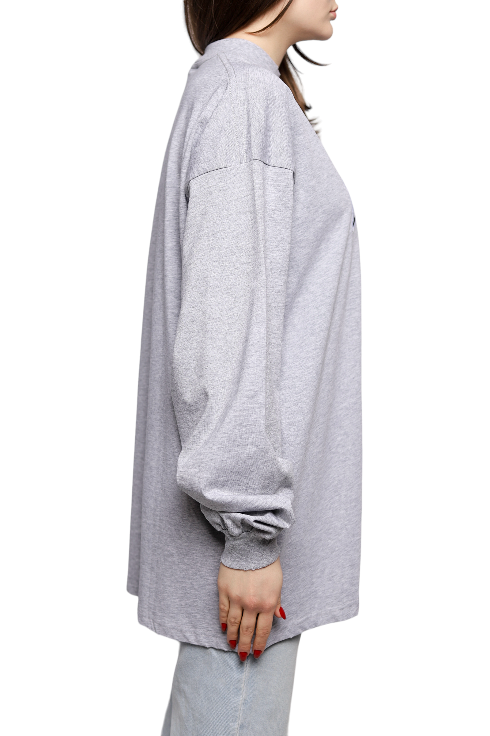 Ця футболка з довгими рукавами виготовлена з 100% бавовни та має стиль оверсайз. Круглий еластичний виріз горловини та еластичні манжети роблять її комфортною у носінні. На грудях розміщений контрастний принт з логотипом, що створює класичний, але виразний образ. Ребриста обробка додає додаткової текстури та стилю.