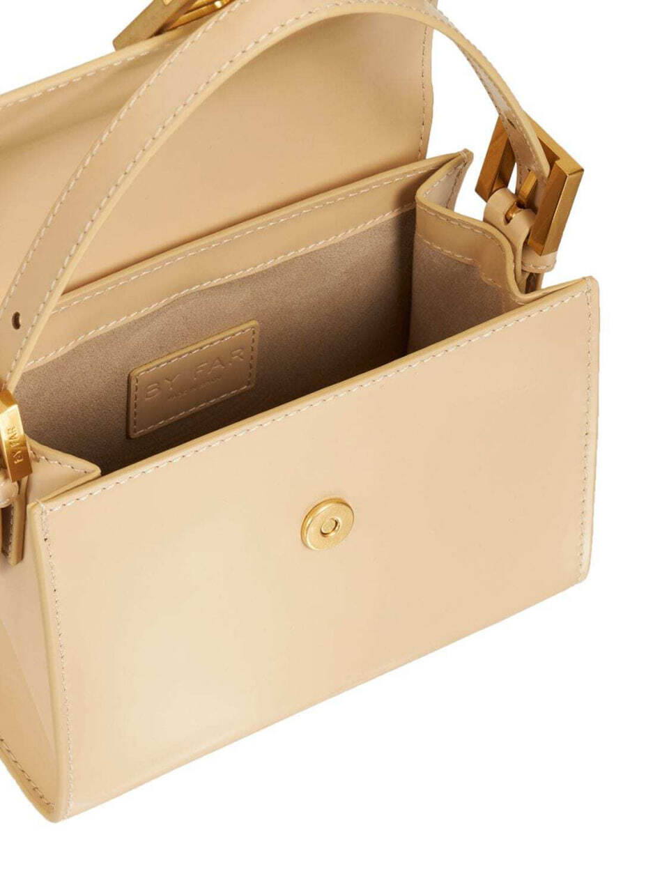 Сумка Fran від BY FAR - це класична модель, яка вражає своєю елегантністю і стилем. Вона виготовлена з напівлакованої шкіри, що надає їй розкішного вигляду і водночас робить її довговічною. Модель оснащена регульованою ручкою та ремінцем, що забезпечує зручність у носінні в різних ситуаціях. Логотип BF на клапані та фурнітура у золотому кольорі додають сумці шарму та елегантності. Наявність внутрішньої кишені робить цю сумку практичним і функціональним аксесуаром для зберігання різних предметів.