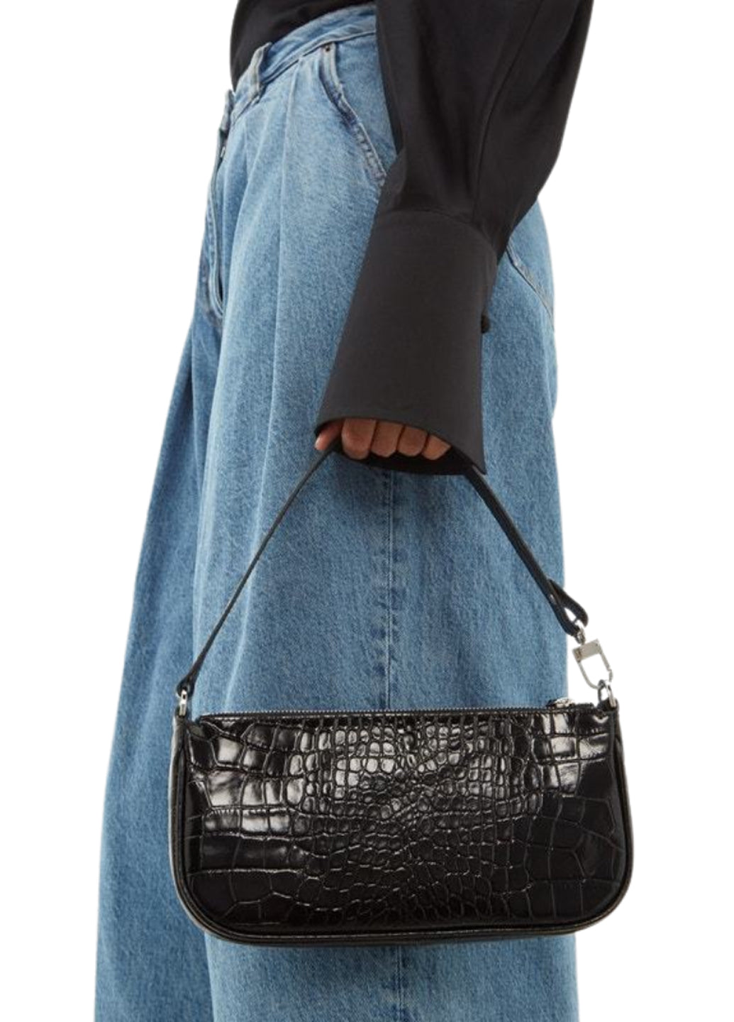 By Far Rachel Black Croco Embossed Leather