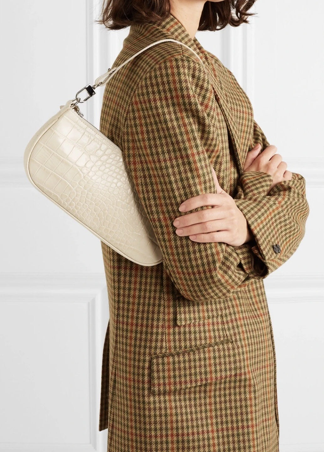 By Far Rachel Cream Croco Embossed Leather