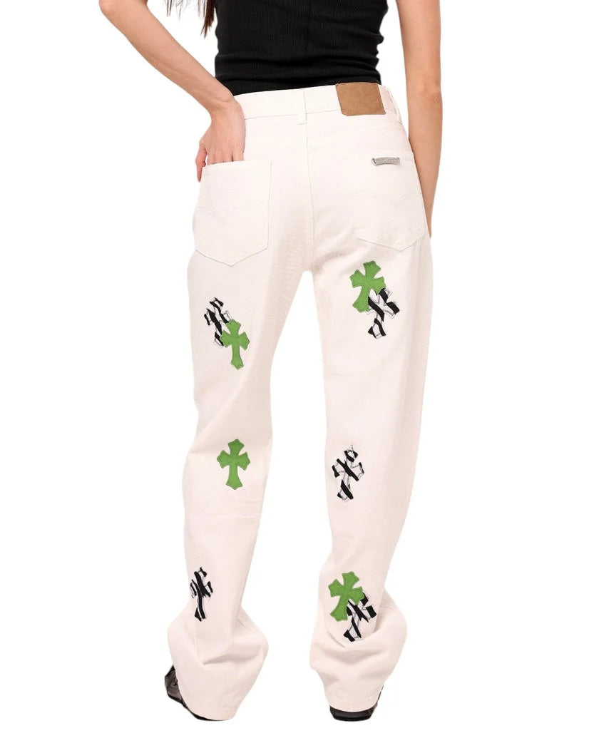 Chrome Hearts Jeans with Green and Black Cross White CH132-WT