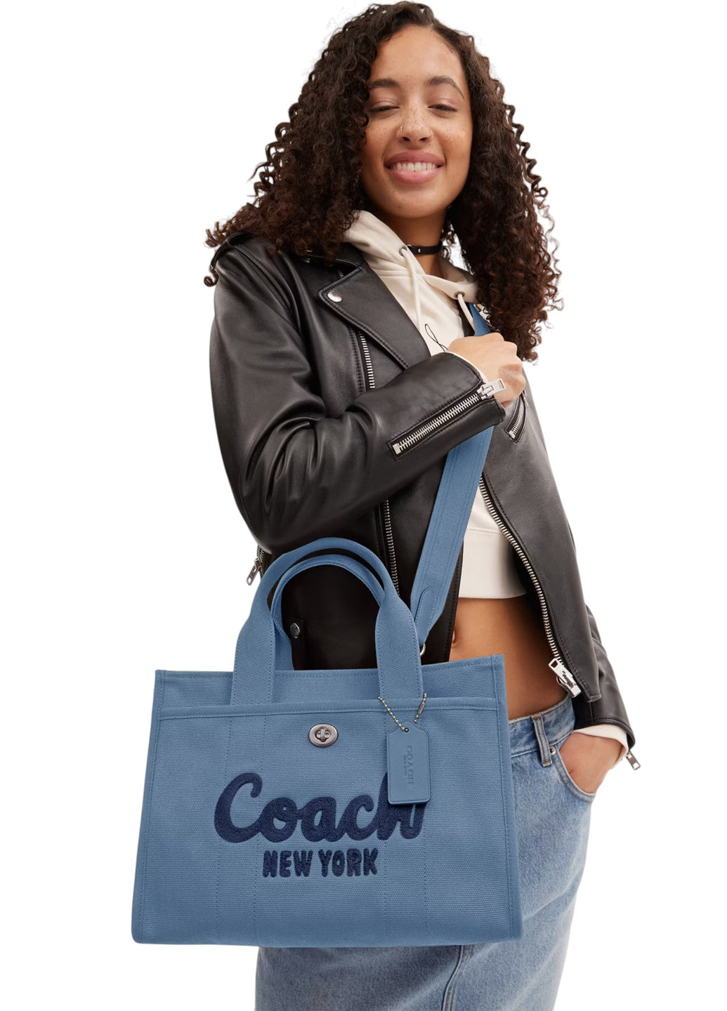 Coach Cargo Tote Bag 34 — простора та зручна сумка, яка легко вміщує всі необхідні речі. Велике основне відділення розраховане на ноутбук до 13 дюймів, а зовнішні кишені допомагають тримати дрібниці під рукою. Класичний дизайн із вишитим логотипом Coach та застібкою turnlock додає виробу стильності. Знімний ремінь дає змогу носити сумку на плечі або через плече. Ідеальний вибір для тих, хто потребує містку сумку для активного дня.