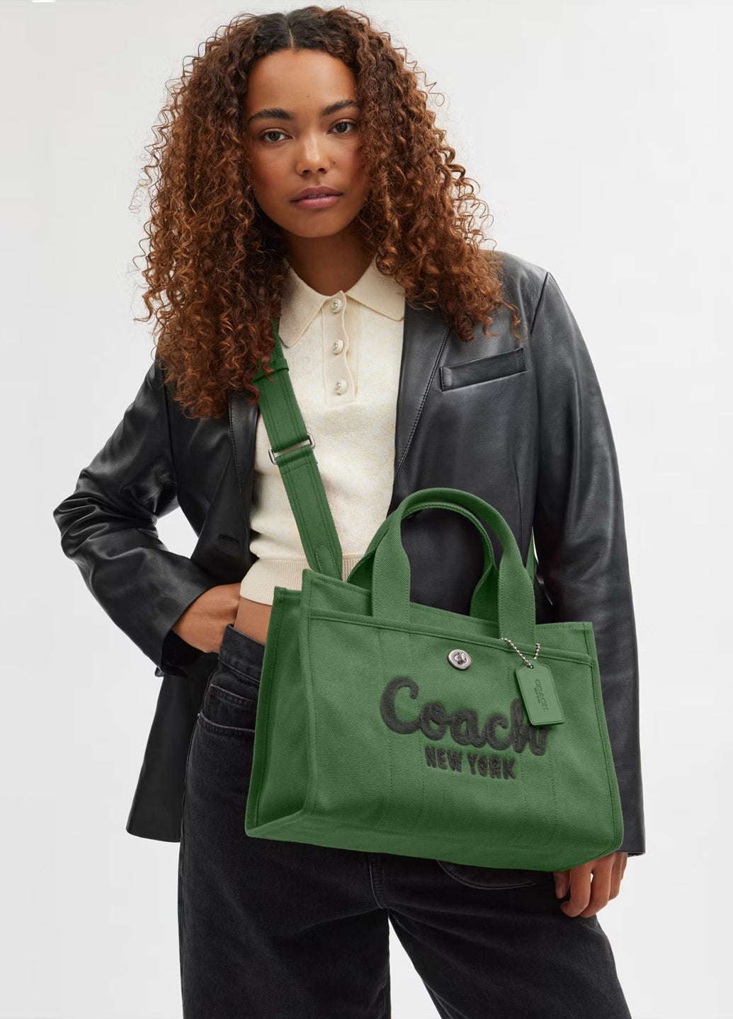 Coach Cargo Tote Bag 34 — простора та зручна сумка, яка легко вміщує всі необхідні речі. Велике основне відділення розраховане на ноутбук до 13 дюймів, а зовнішні кишені допомагають тримати дрібниці під рукою. Класичний дизайн із вишитим логотипом Coach та застібкою turnlock додає виробу стильності. Знімний ремінь дає змогу носити сумку на плечі або через плече. Ідеальний вибір для тих, хто потребує містку сумку для активного дня.