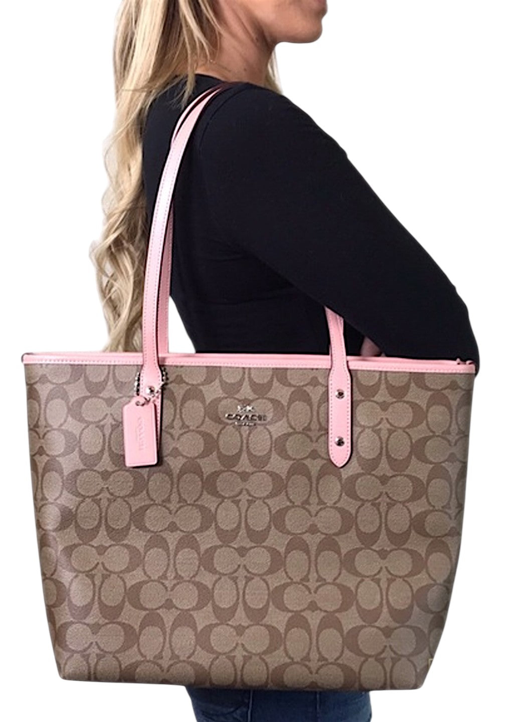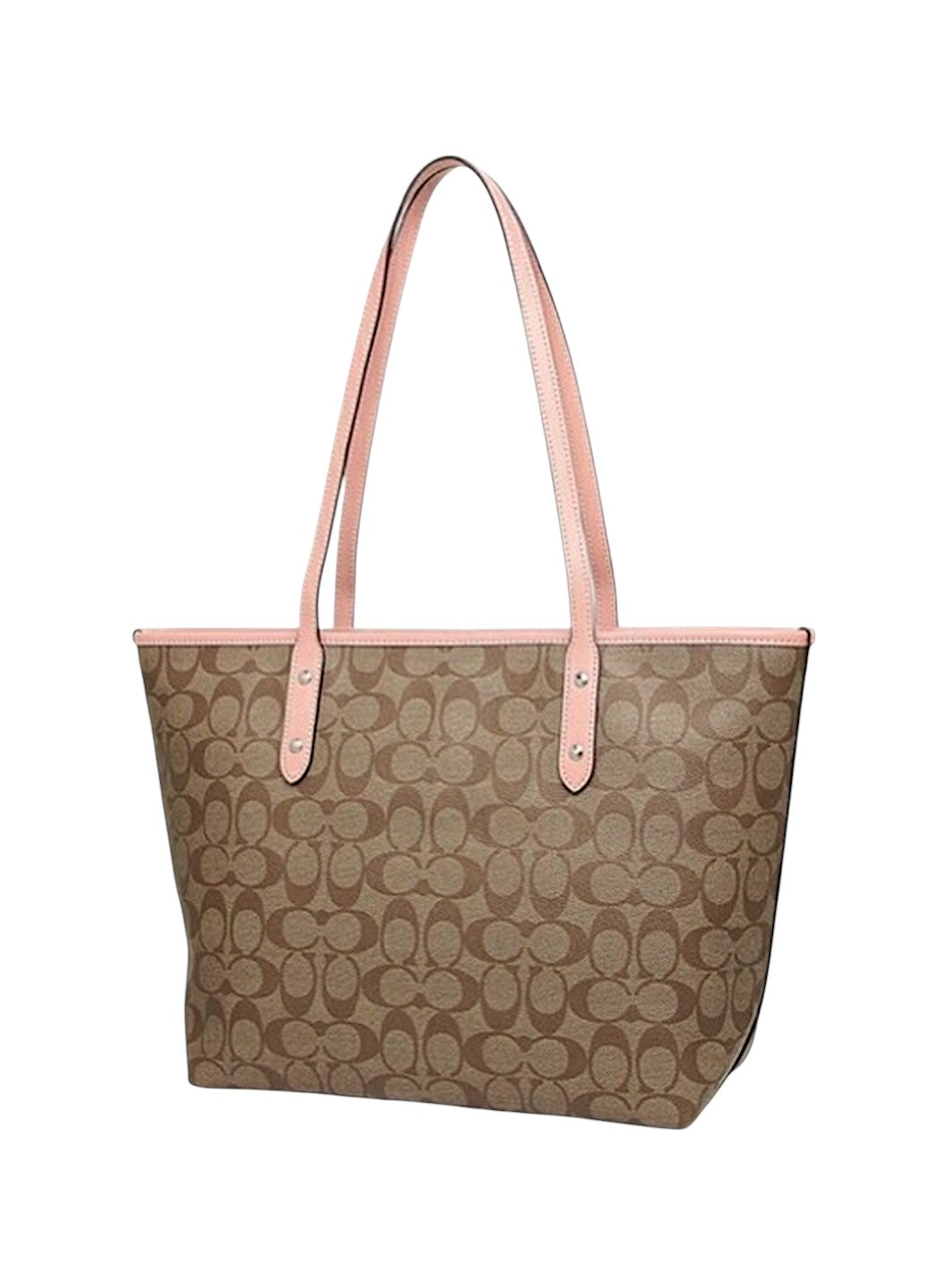 Coach City Tote In Signature Canvas Light Brown/Pink