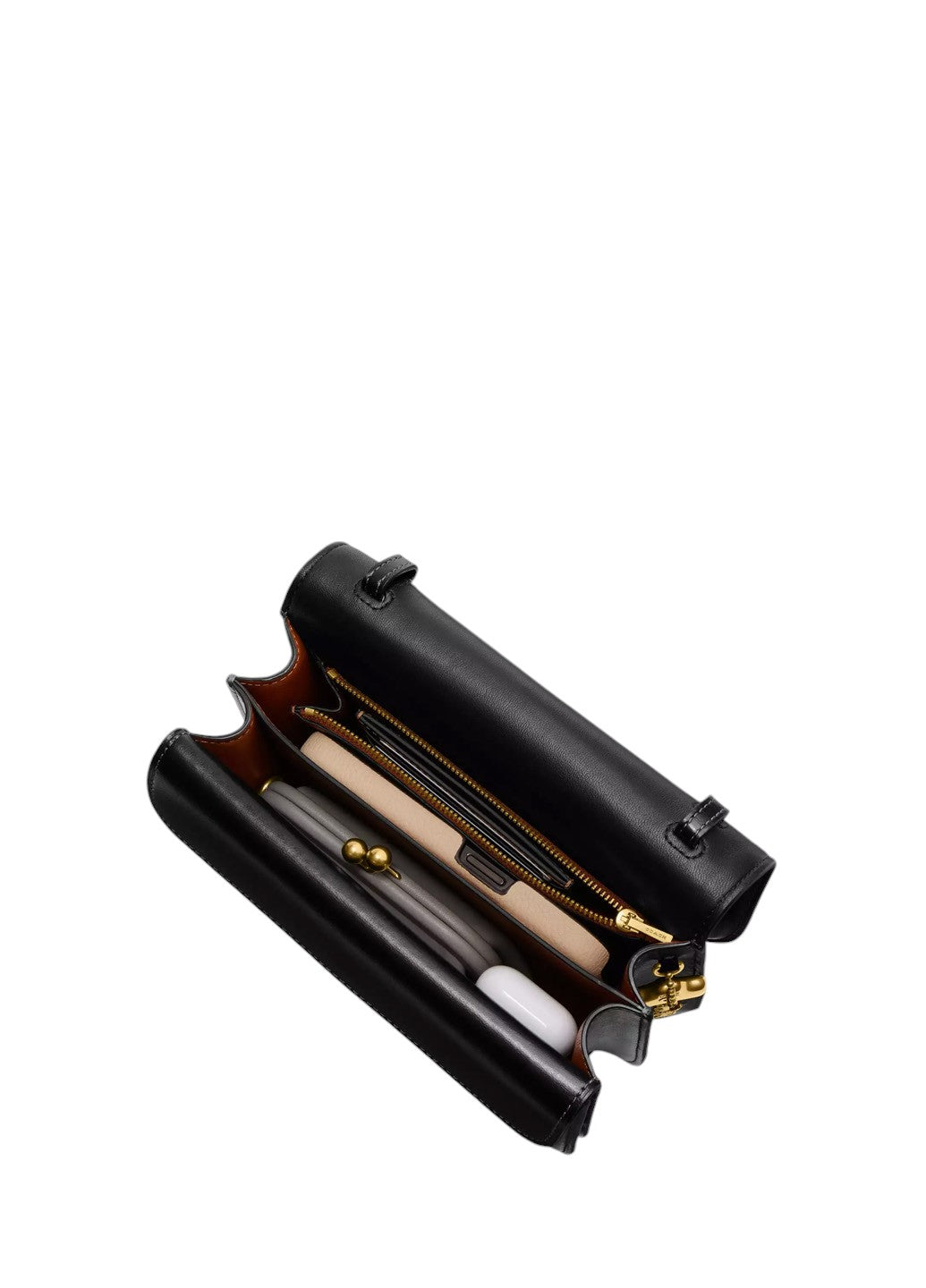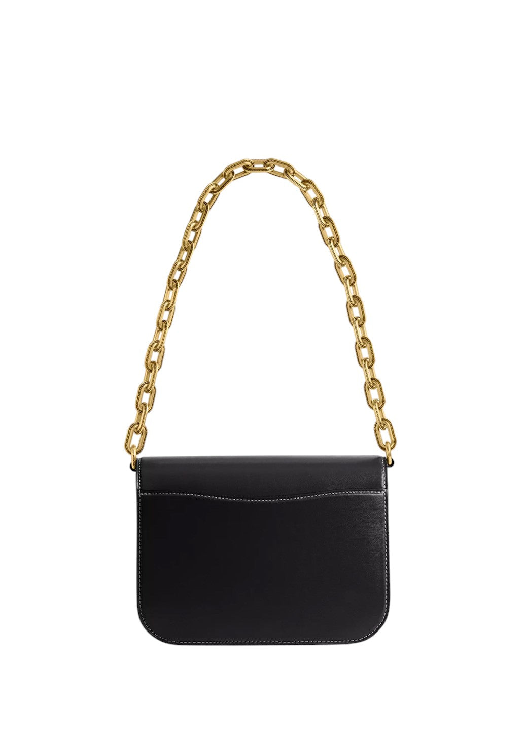 Ідеально підходить для всіх необхідних речей, має знімний ремінець через плече та ремінець з ланцюжка для носіння на плечі або в руці. Модель застібається на магнітну застібку золотистого кольору з логотипом та має декілька кишень.