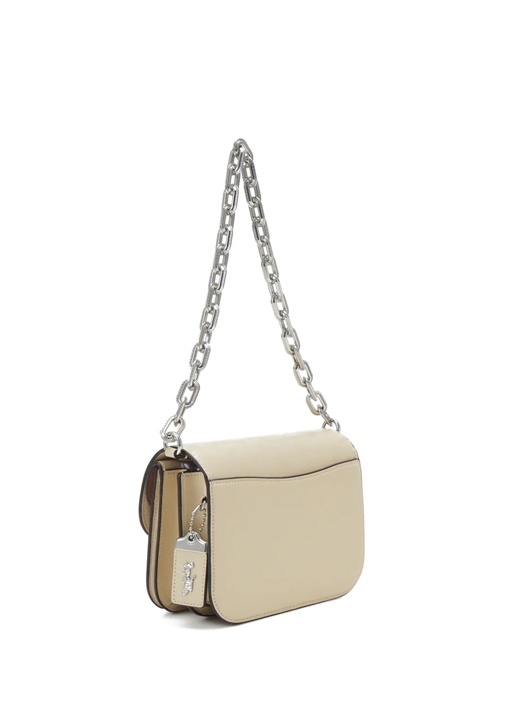 Ідеально підходить для всіх необхідних речей, має знімний ремінець через плече та ремінець з ланцюжка для носіння на плечі або в руці. Модель застібається на магнітну застібку сріблястого кольору з логотипом та має декілька кишень.