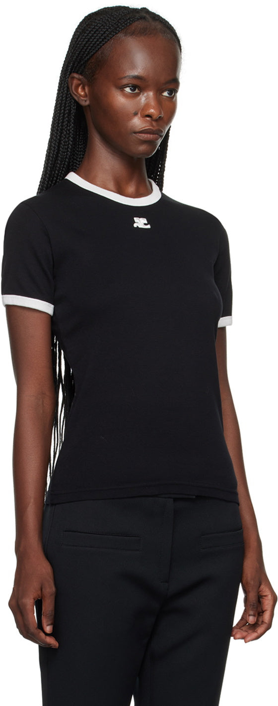 Courreges Contrast Cotton T-shirt Black